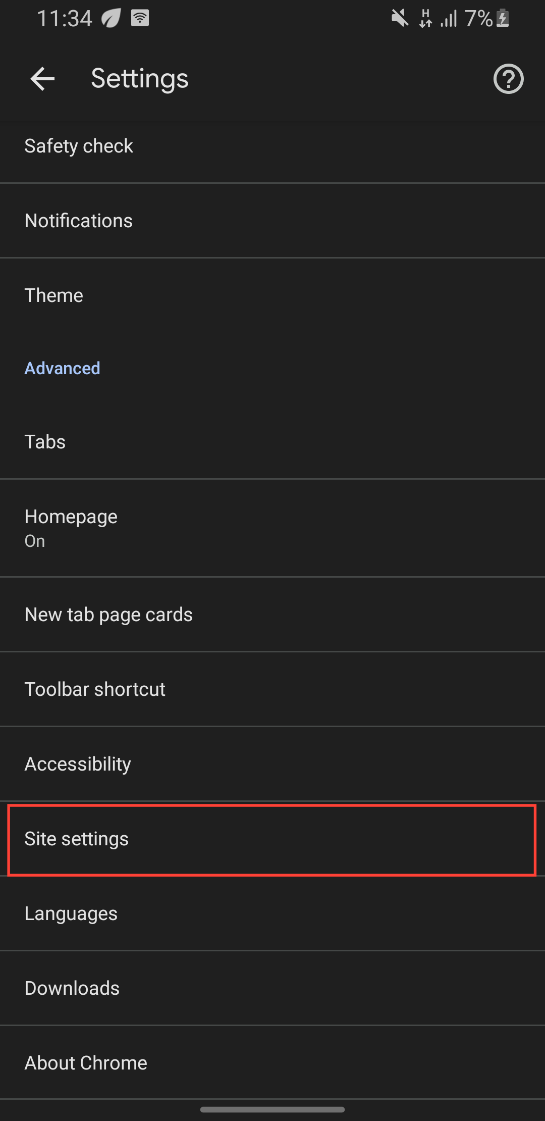 Step 3: Under "Advanced" tap "Site settings"