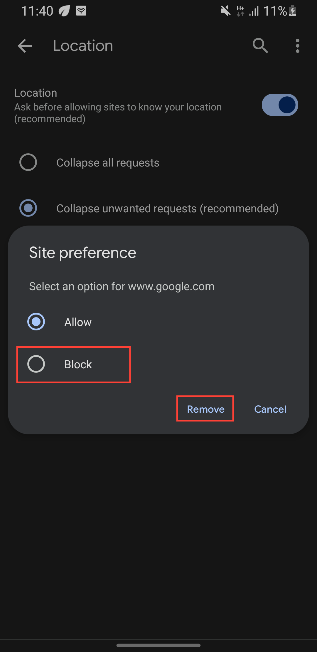Step 6: If it's a site you don't want, tap on it and select "Block" or "Remove"