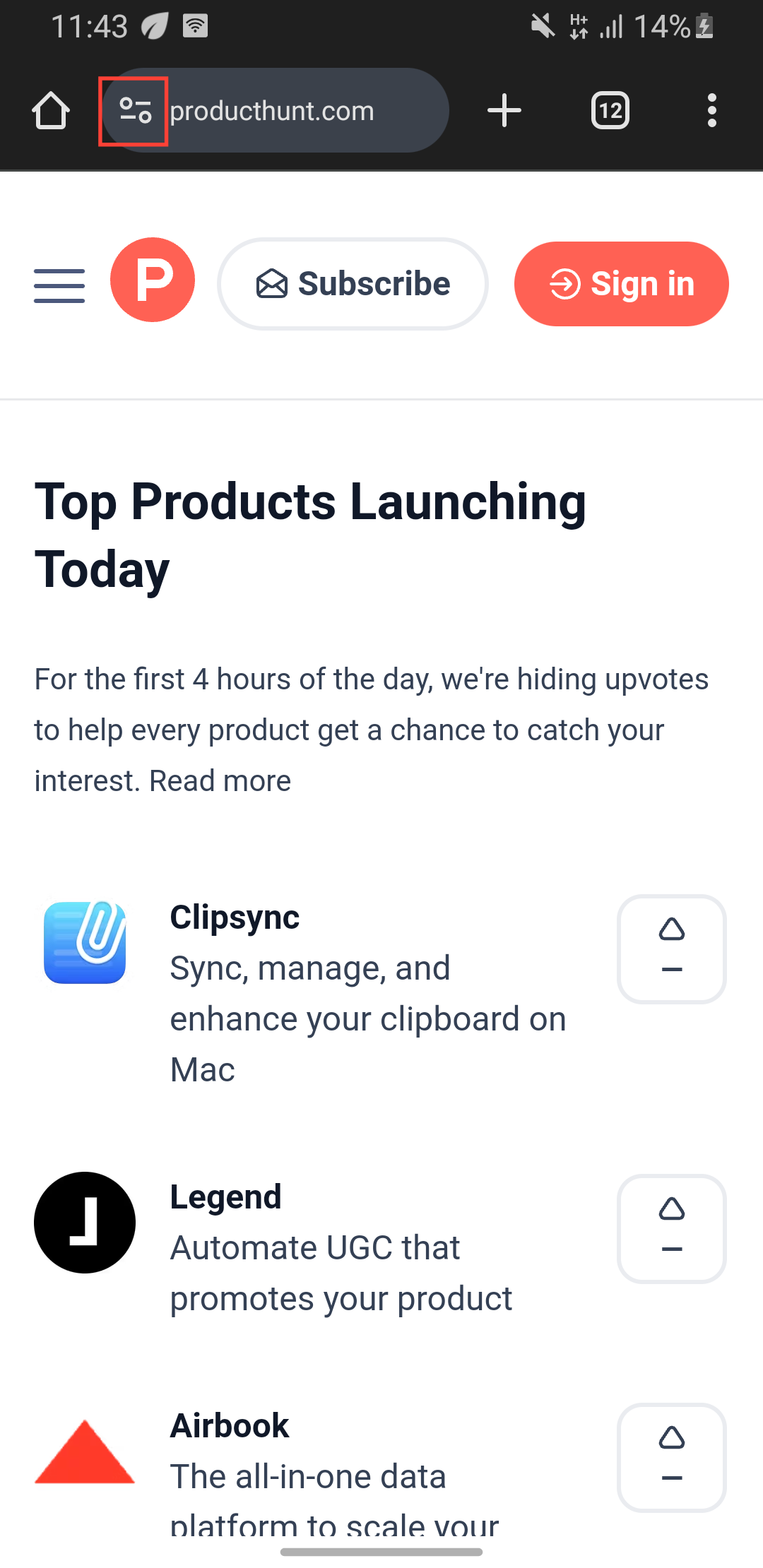 Step 2: To the left of the address bar, tap the "view site information" icon.