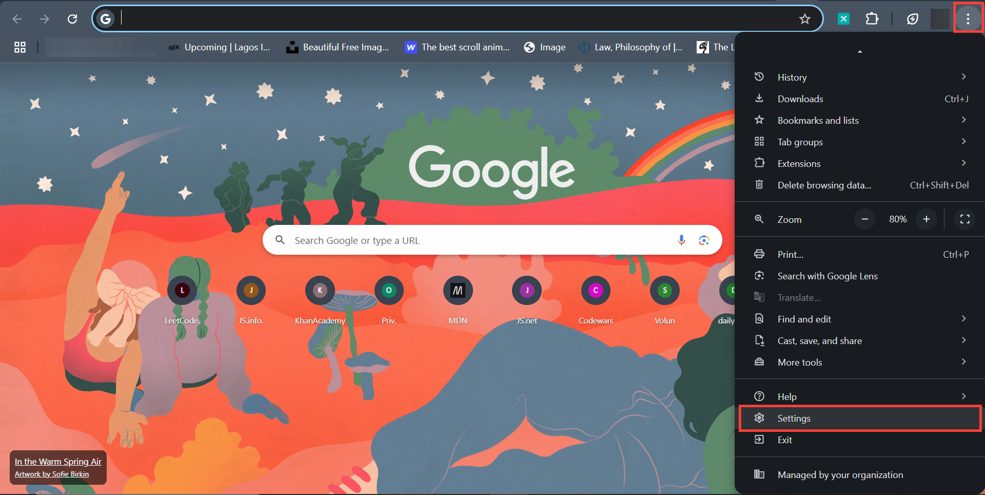 Step 1: Open Chrome and click the three-dot menu at the top right and click "Settings"