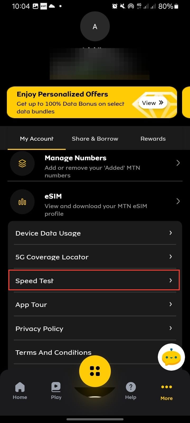 In case you want to check your internet speed, here's how you can do it using the MyMTN app: