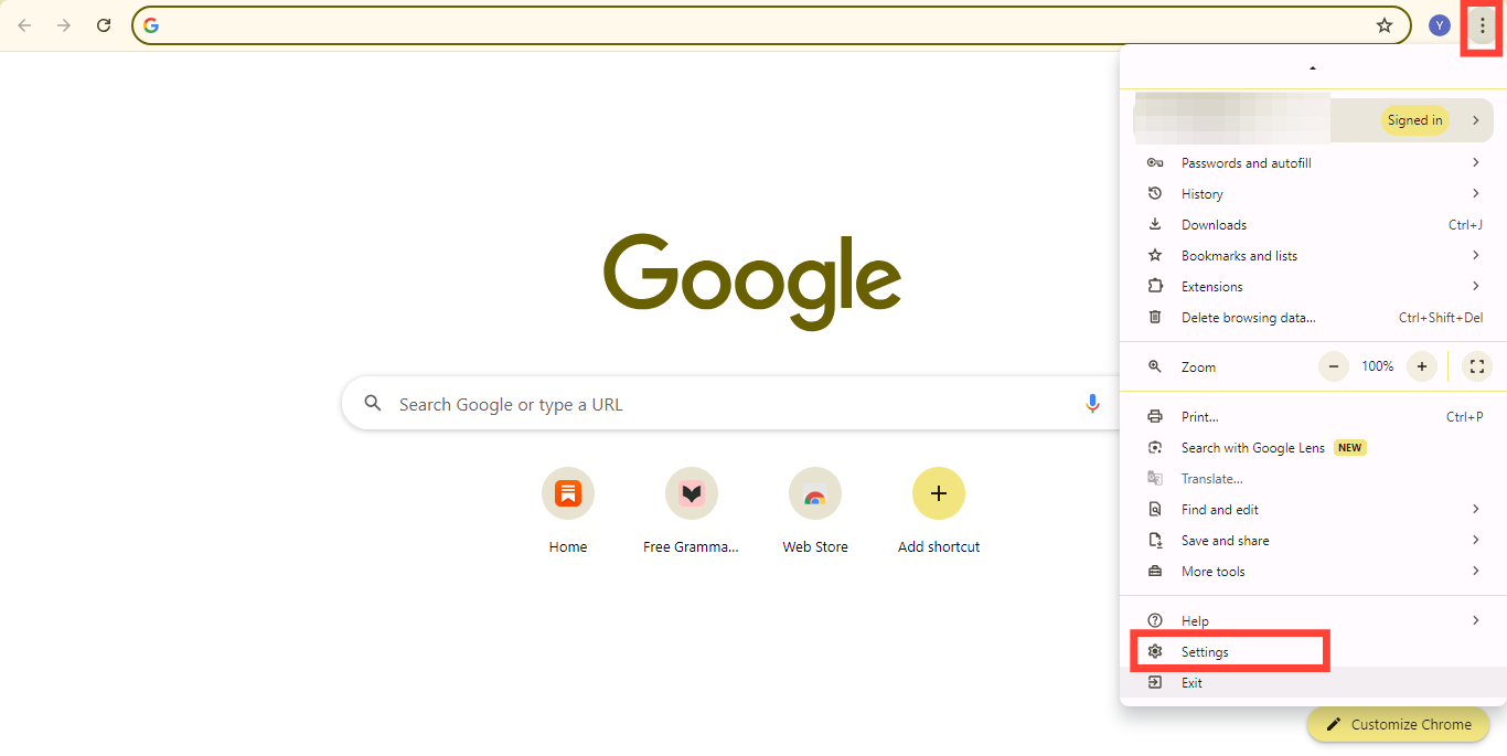 Step 1. Open Chrome Settings
