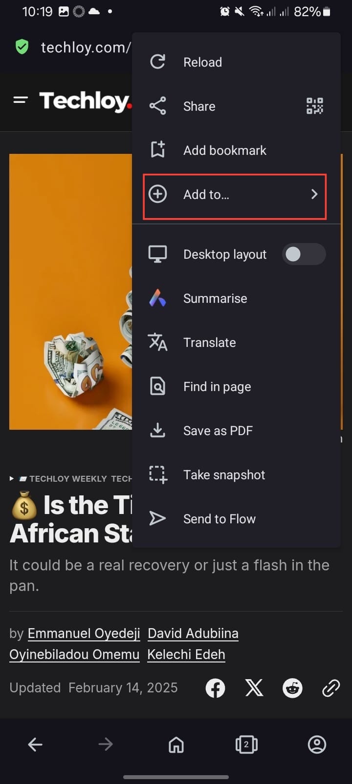 Step 3. From the list of options, select "Add to" and then choose "Offline reading."
