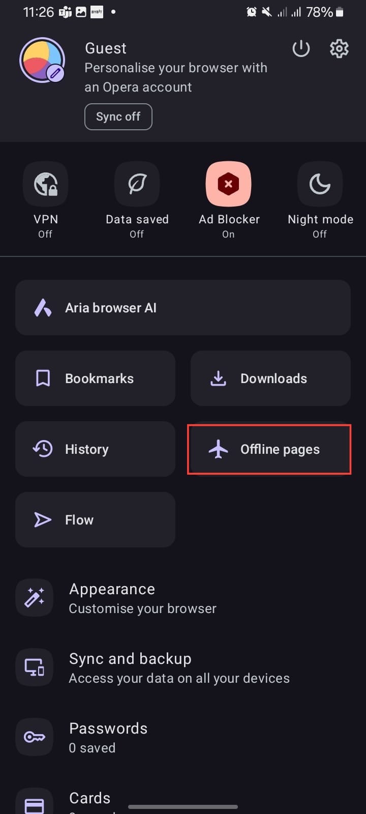 Step 2. Select "Offline pages" from the list of options.