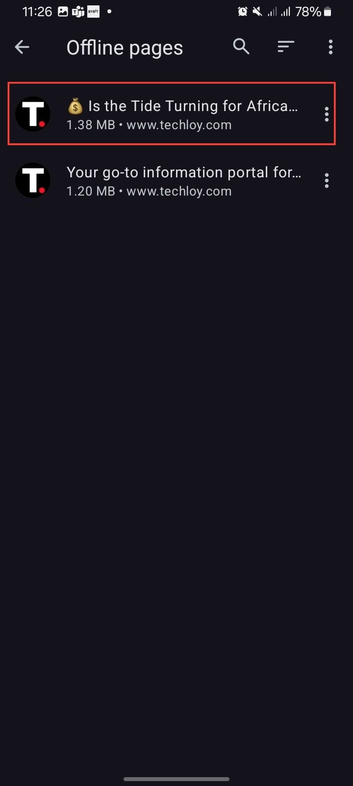 Step 3. On the Offline Pages section, tap on the news article or blog post you want to read.