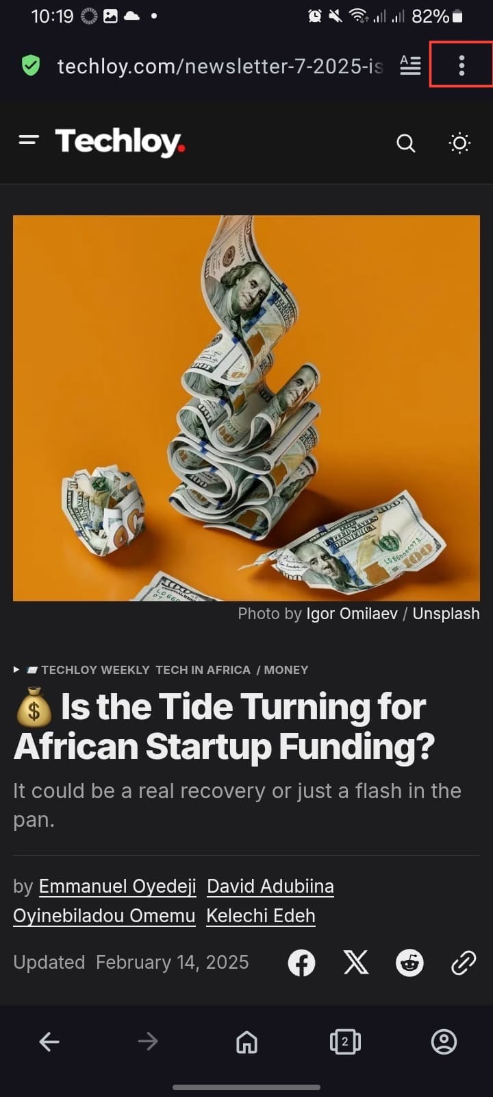 Step 2. Once on the page, tap the three-dot icon at the top right corner of your browser to access more options.