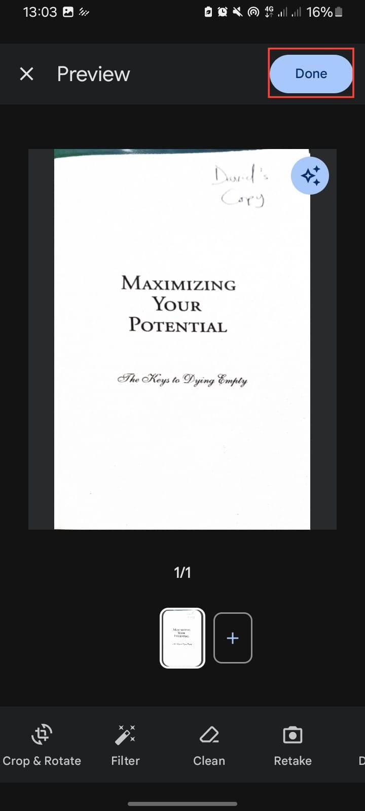 Step 6. After scanning, you can crop, adjust, or retake the image.