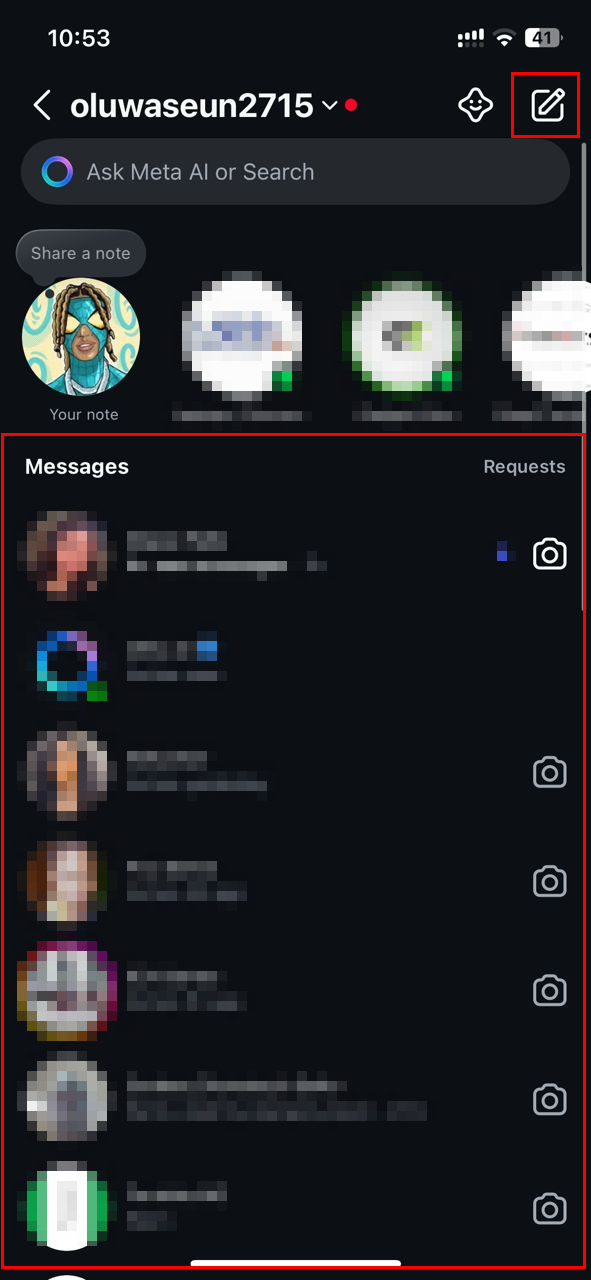 Step 2: Select an existing conversation in the Messages section or create a new conversation by clicking the New message icon in the top right