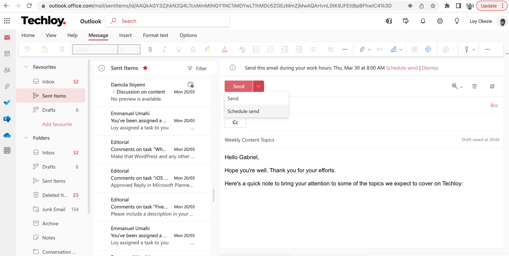 Here's how to schedule an email in Outlook Web