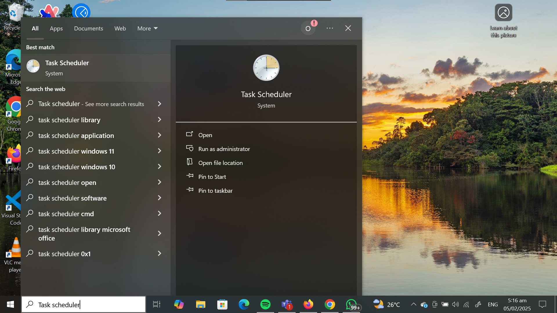 Step 1: Search for "Task Scheduler" on the search bar and open it.