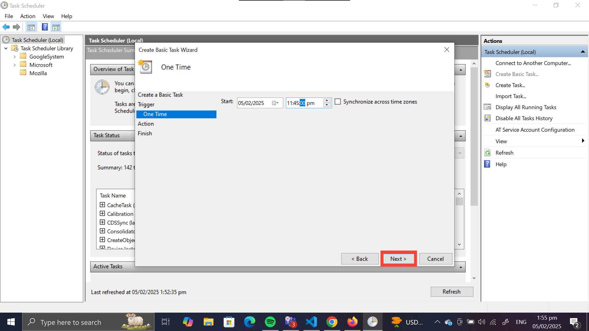 Step 5: Adjust the time and date you want to activate the task, and click "Next".