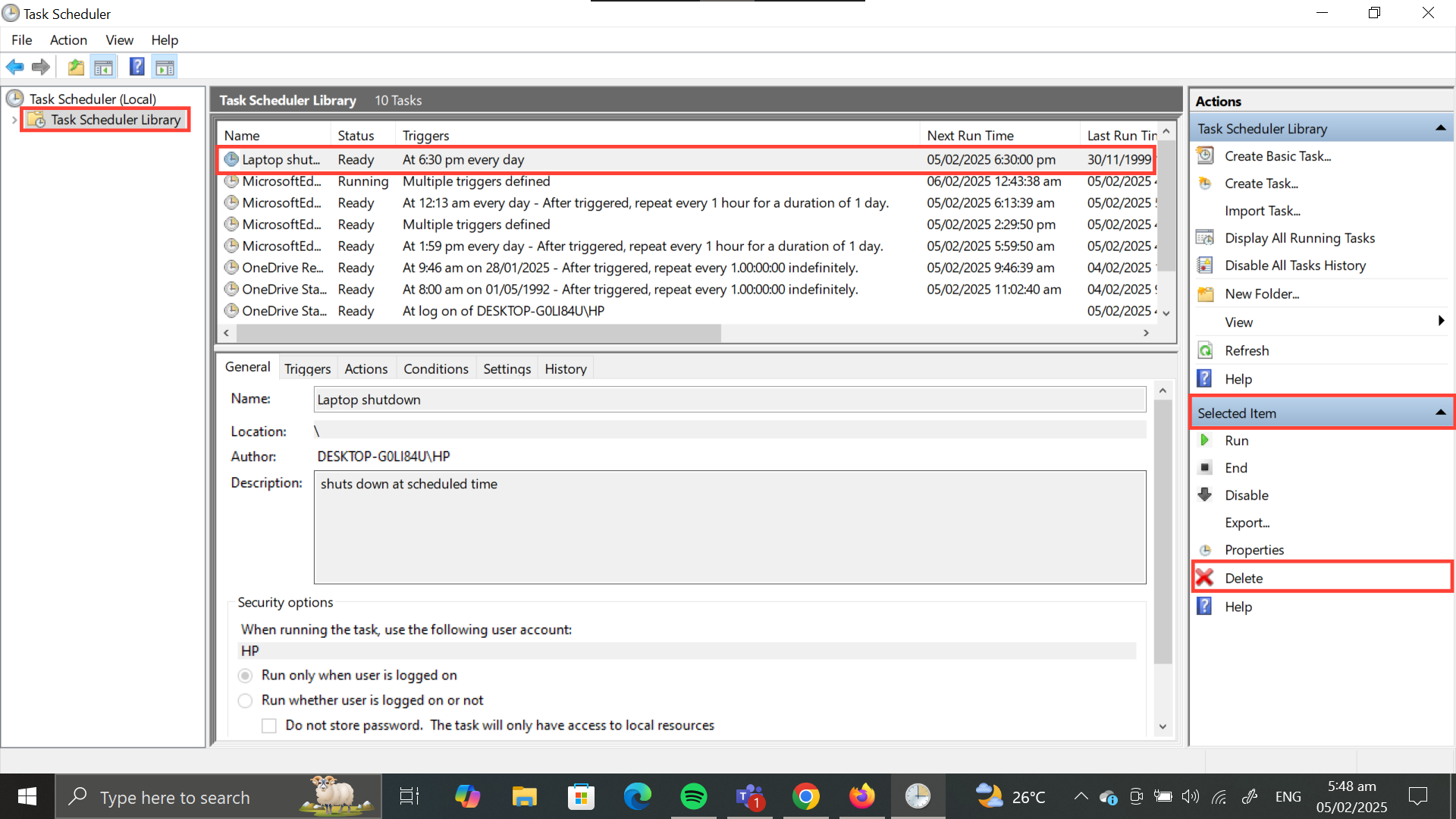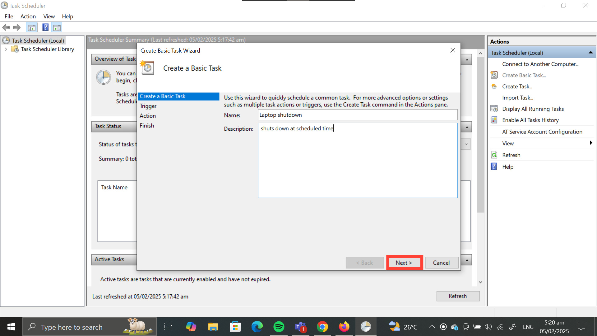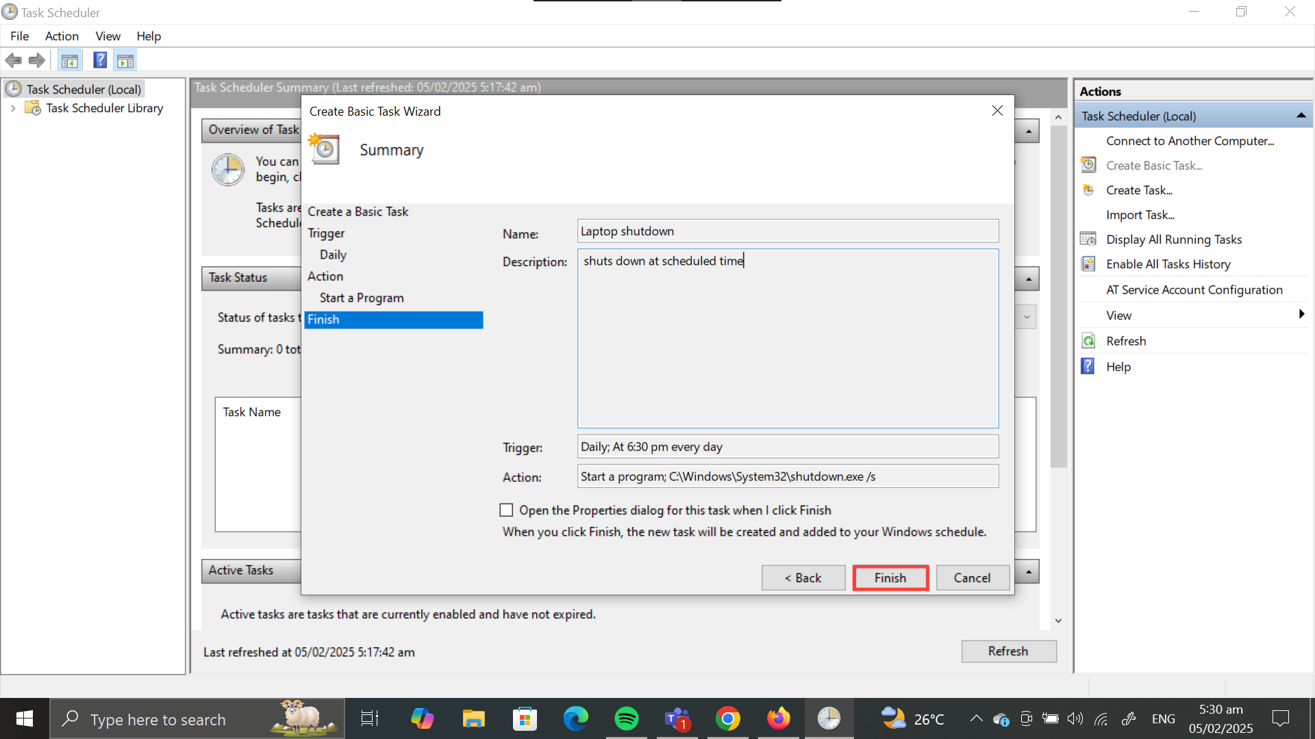 How to Schedule Laptop Shutdown using Task Scheduler