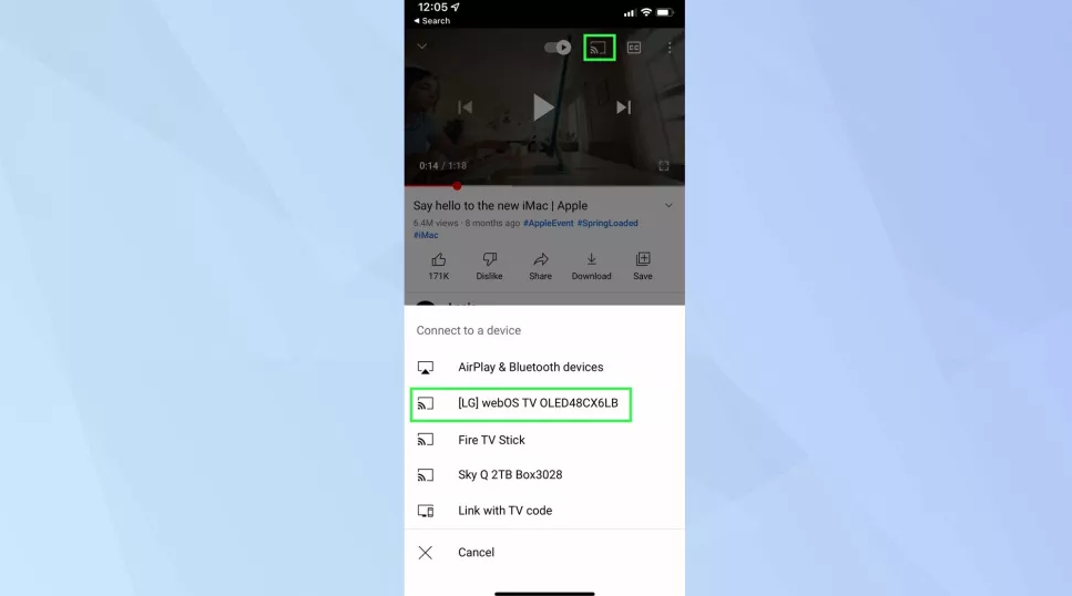 2. Tap the streaming icon within the app and select the device you wish to connect to.