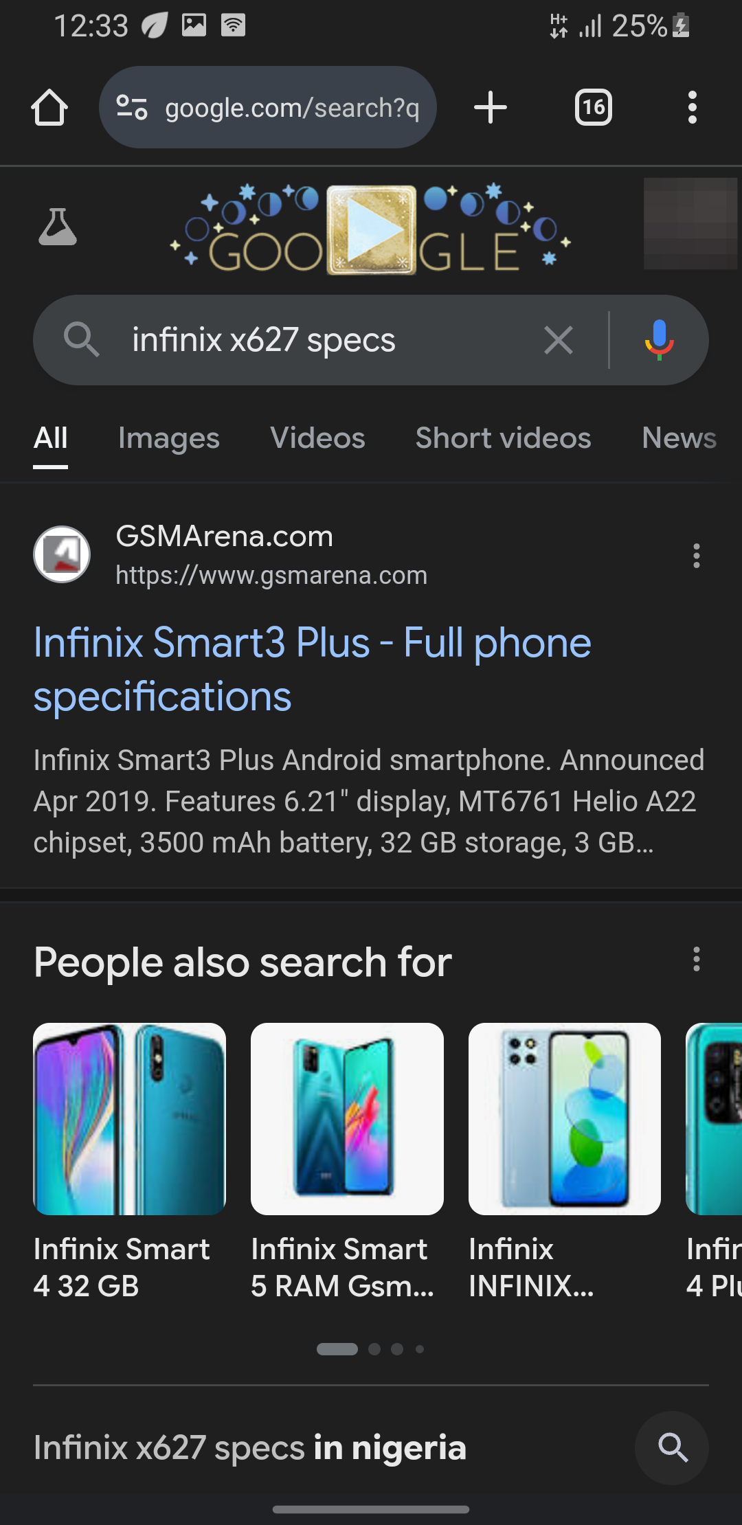 Step 3: Type the model number on your browser with the suffix "specs"