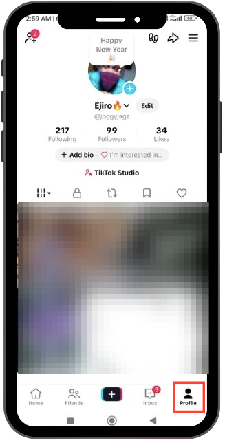 Go to Profile: Open the TikTok app and tap on the Profile icon in the bottom right corner of the screen to go to your profile page.