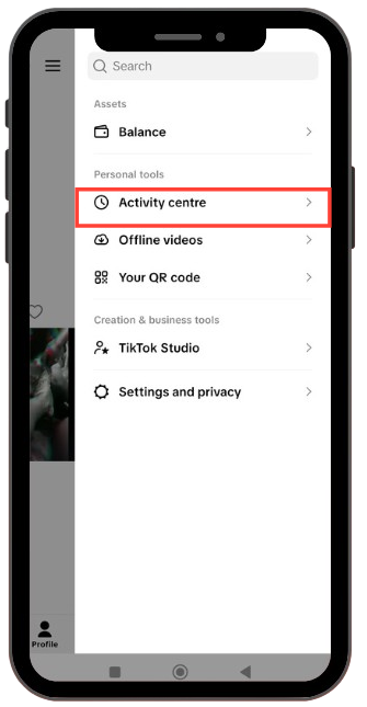 Note: In some versions of TikTok, if you don't see "Activity Centre" immediately, you may need to tap "Settings and Privacy" first, and then find "Activity Centre" inside that menu.