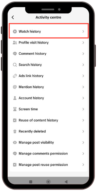 Tap on Watch History: You will now see a list of your activity. Tap on the very first option at the top is Watch History.