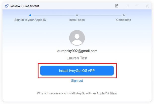 - Install iAnyGo iOS App: Through the iAnyGo Assistant, install the iAnyGo iOS application onto your iPhone.