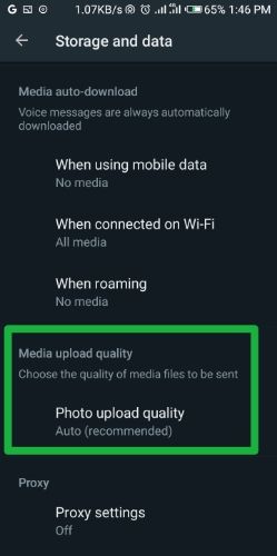 4. Under the Media upload quality section, tap on Photo upload quality