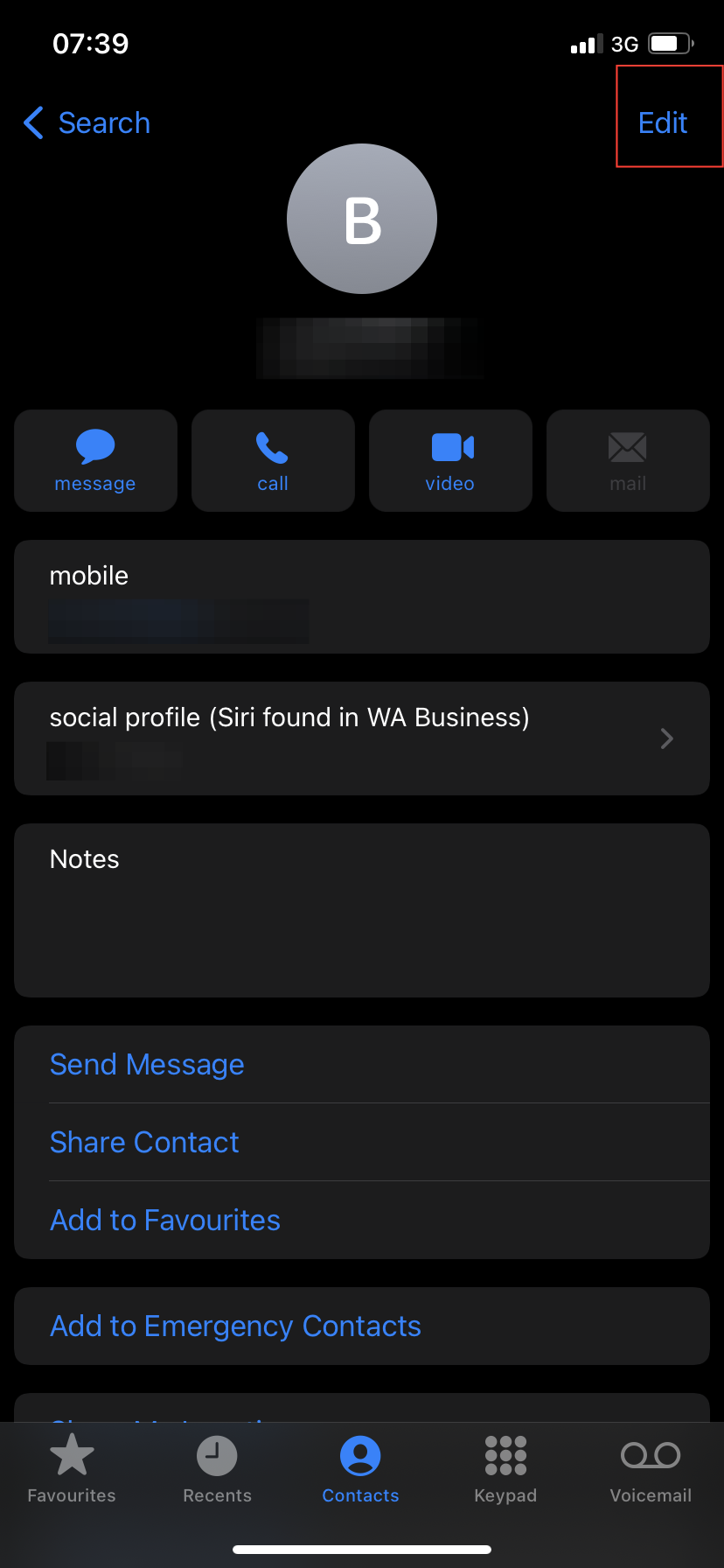- Select the contact you want to assign a custom vibration to. Then, tap Edit in the top-right corner.