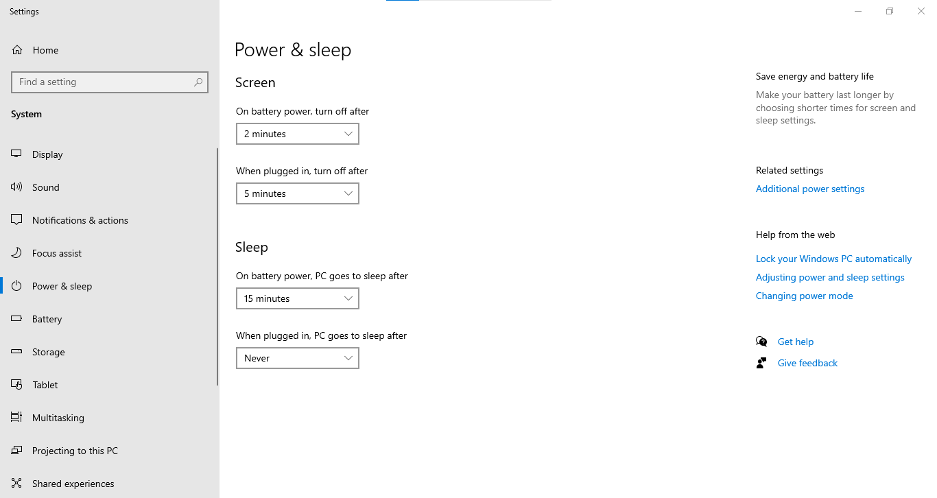 However, it should be noted that if you prevent your computer from sleeping while running 'On battery power', it may drain the battery unless you have set it to Never under the 'When plugged in' option, which requires it to be connected to a power source.