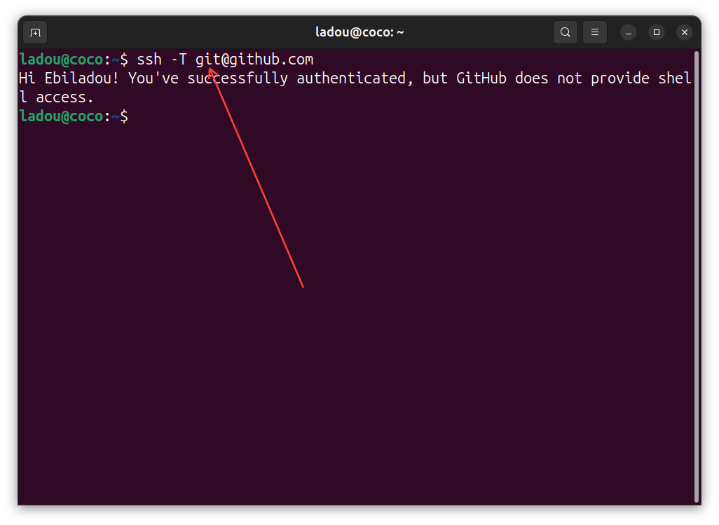 You should see: "Hi (username), You’ve successfully authenticated, but GitHub does not provide shell access."