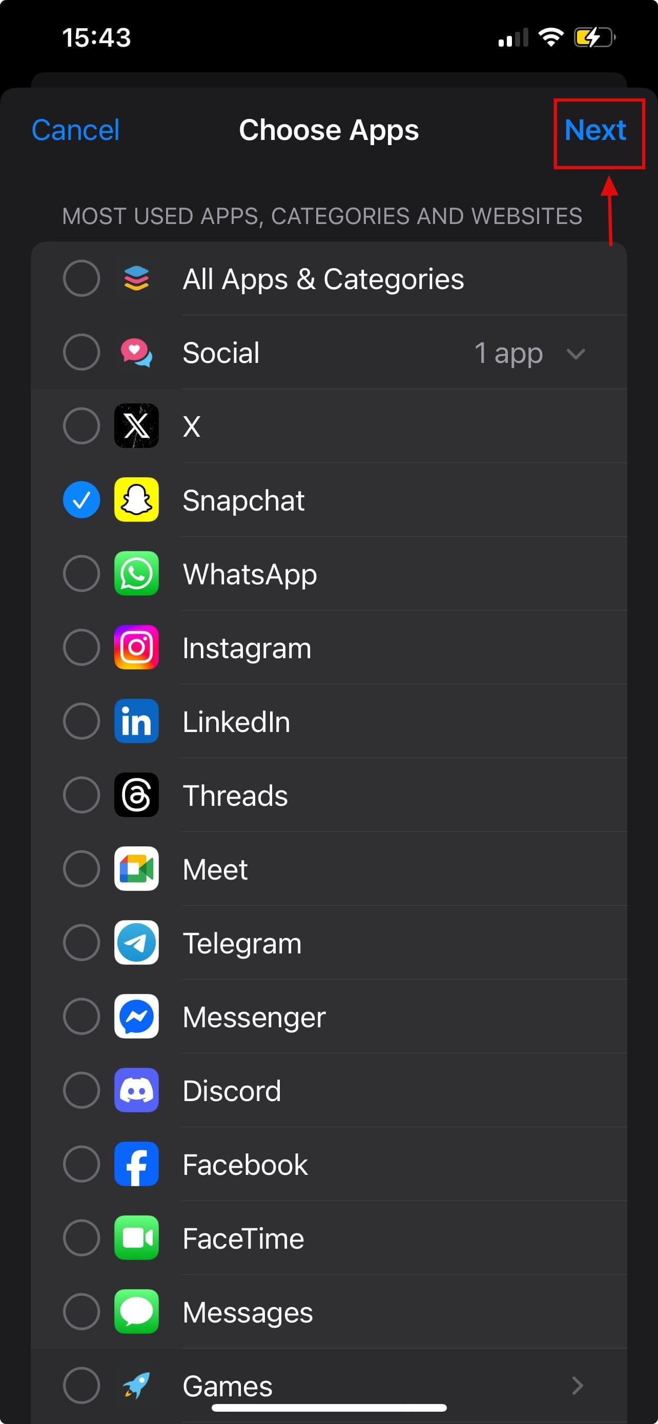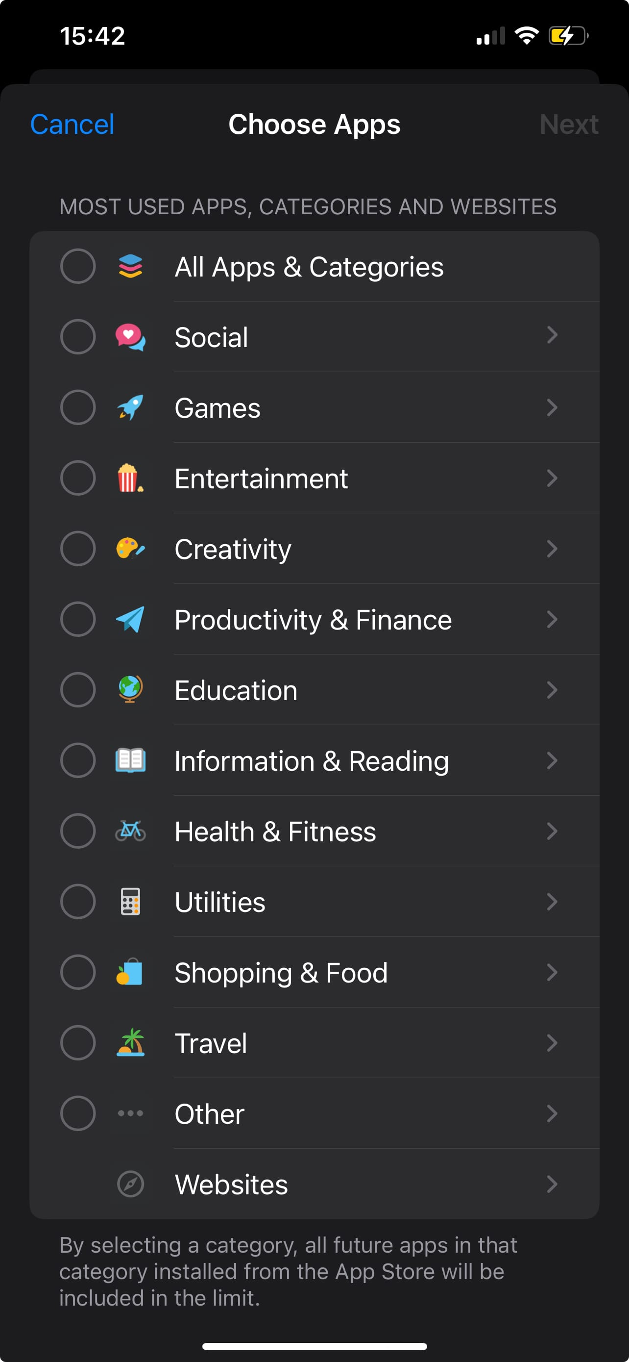 Step 6: Select the Apps, Categories and Websites you want to limit