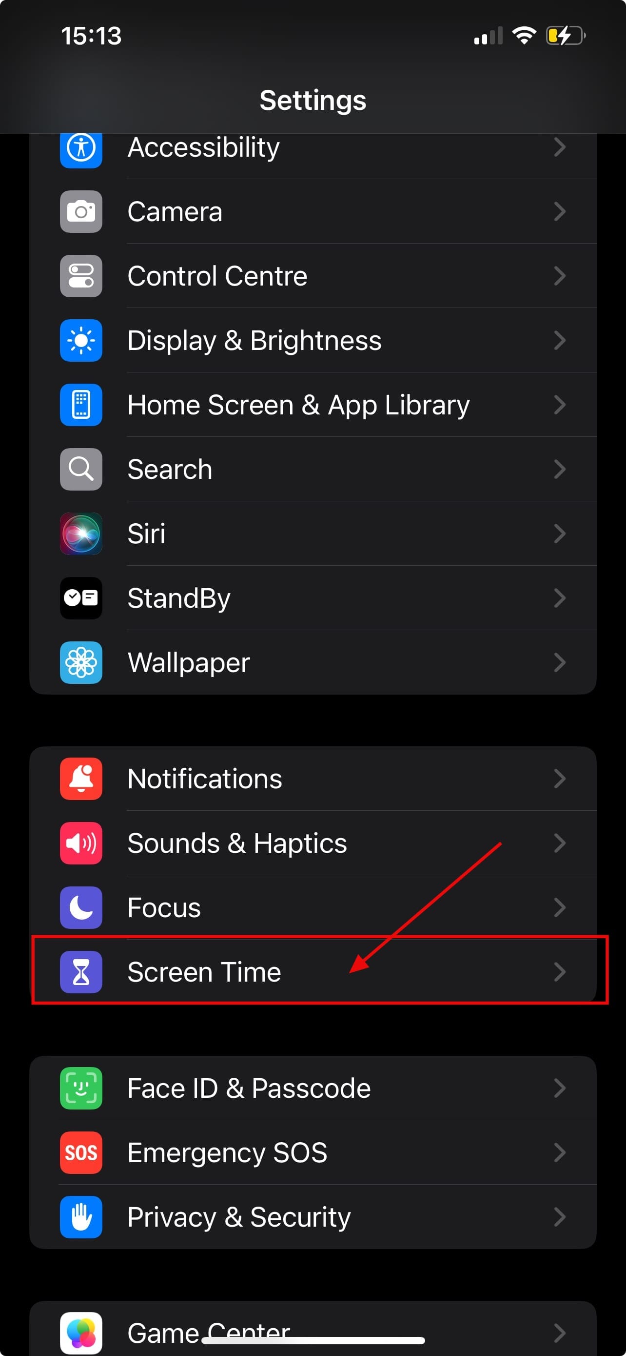 Step 2: Scroll down and tap Screen Time