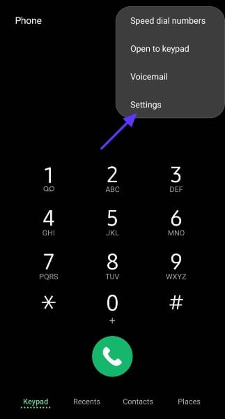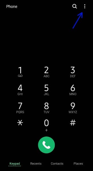 - Open the Phone app and select the three-dot icon at the top-right of the window.