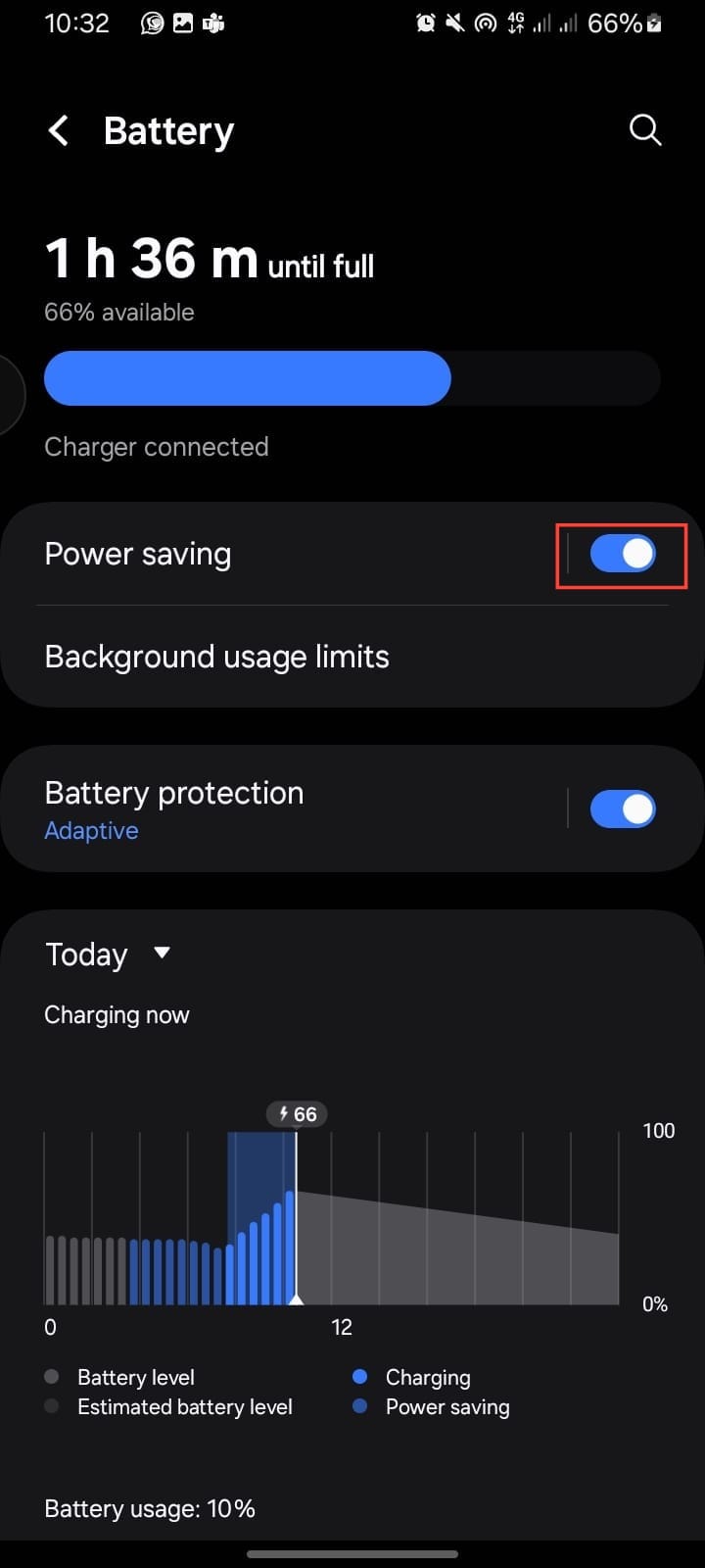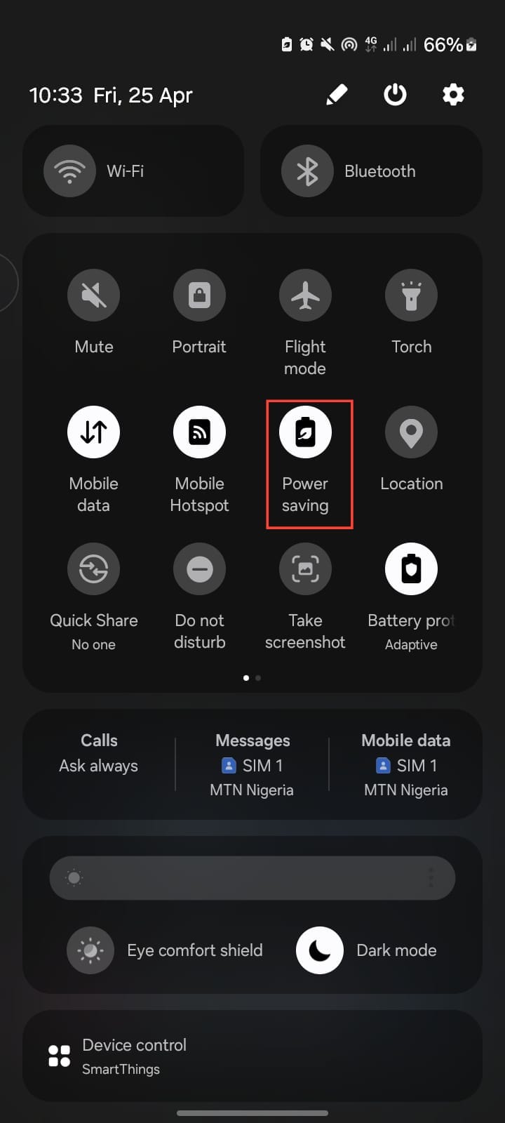 Alternatively, swipe down from the top and tap Power Saving in the quick settings.