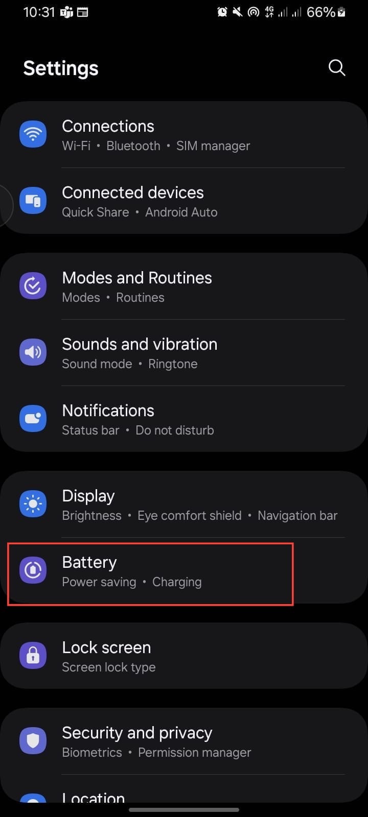 Step 2. Tap on "Battery."