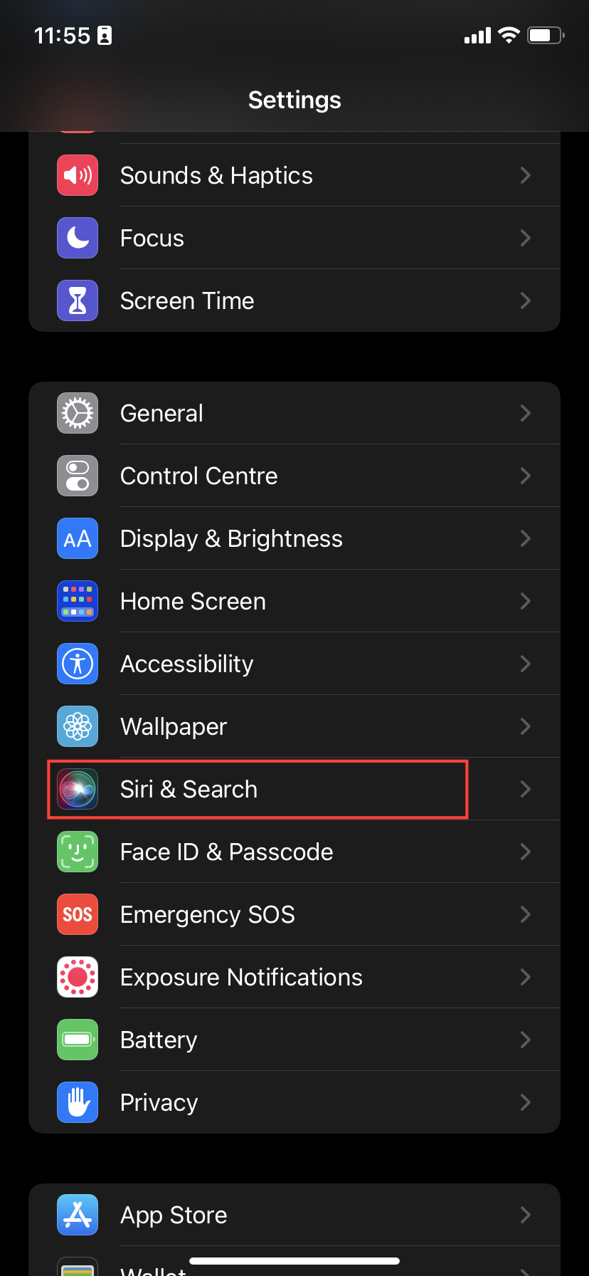 Step 2. Scroll down and select "Siri & Search."