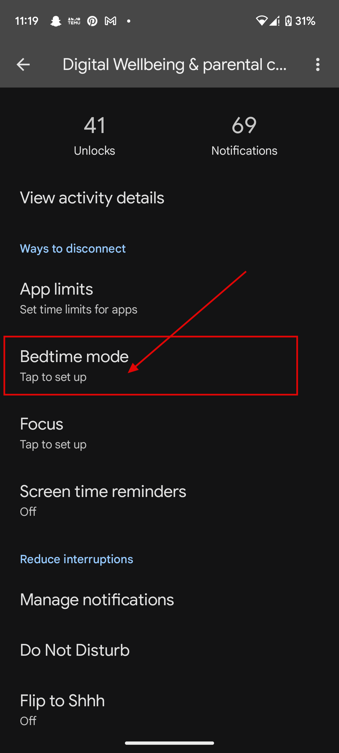 Bedtime Mode, part of Android’s Digital Wellbeing, helps you unplug and sleep better. Available on Android 9+, it mutes notifications, dims the screen, and applies a gray scale filter to curb phone use at night. Set it to activate automatically, adjust brightness, or enable Do Not Disturb to match your bedtime routine, making it easier to resist distractions and rest well.