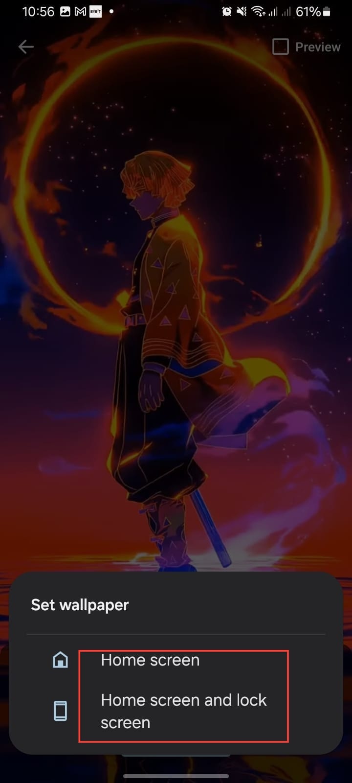 Step 5: A preview page will appear. Tap on "Set wallpaper" to trigger a confirmation screen. This will allow you to choose whether to set the live wallpaper for your home screen only or both the home and lock screen. Tap your preferred option.