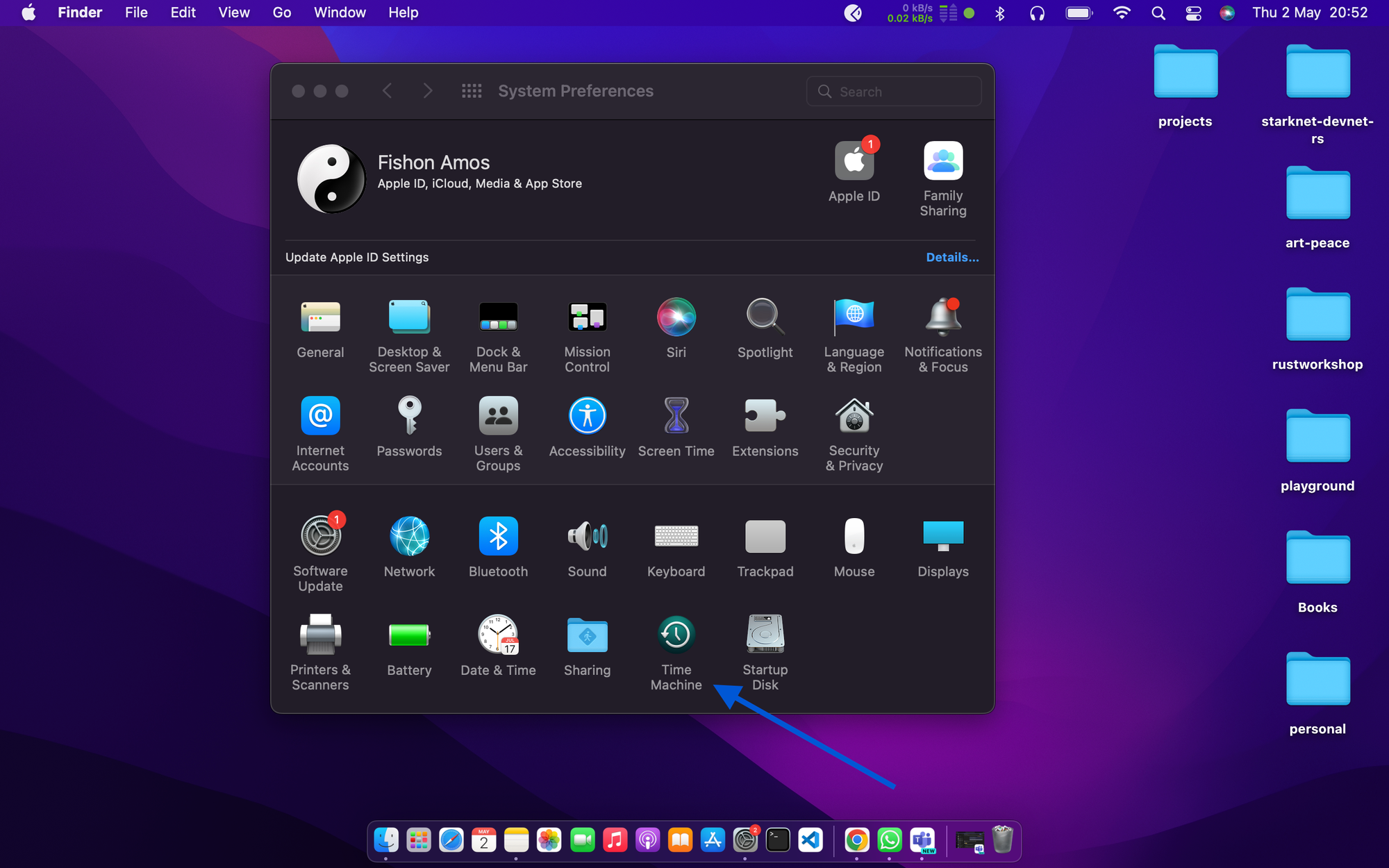 - To set up Time Machine on your Mac, first access the System Preferences from the Apple menu and click on 'Time Machine'.