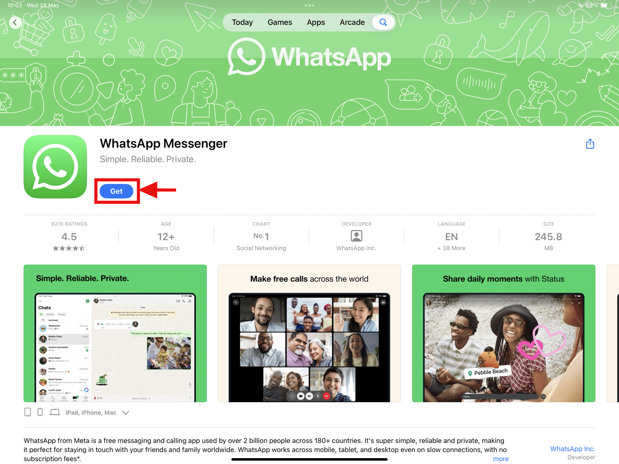 Step 3: Tap Get to download and install the app. You may need to authenticate with your Apple ID password, Face ID or Touch ID