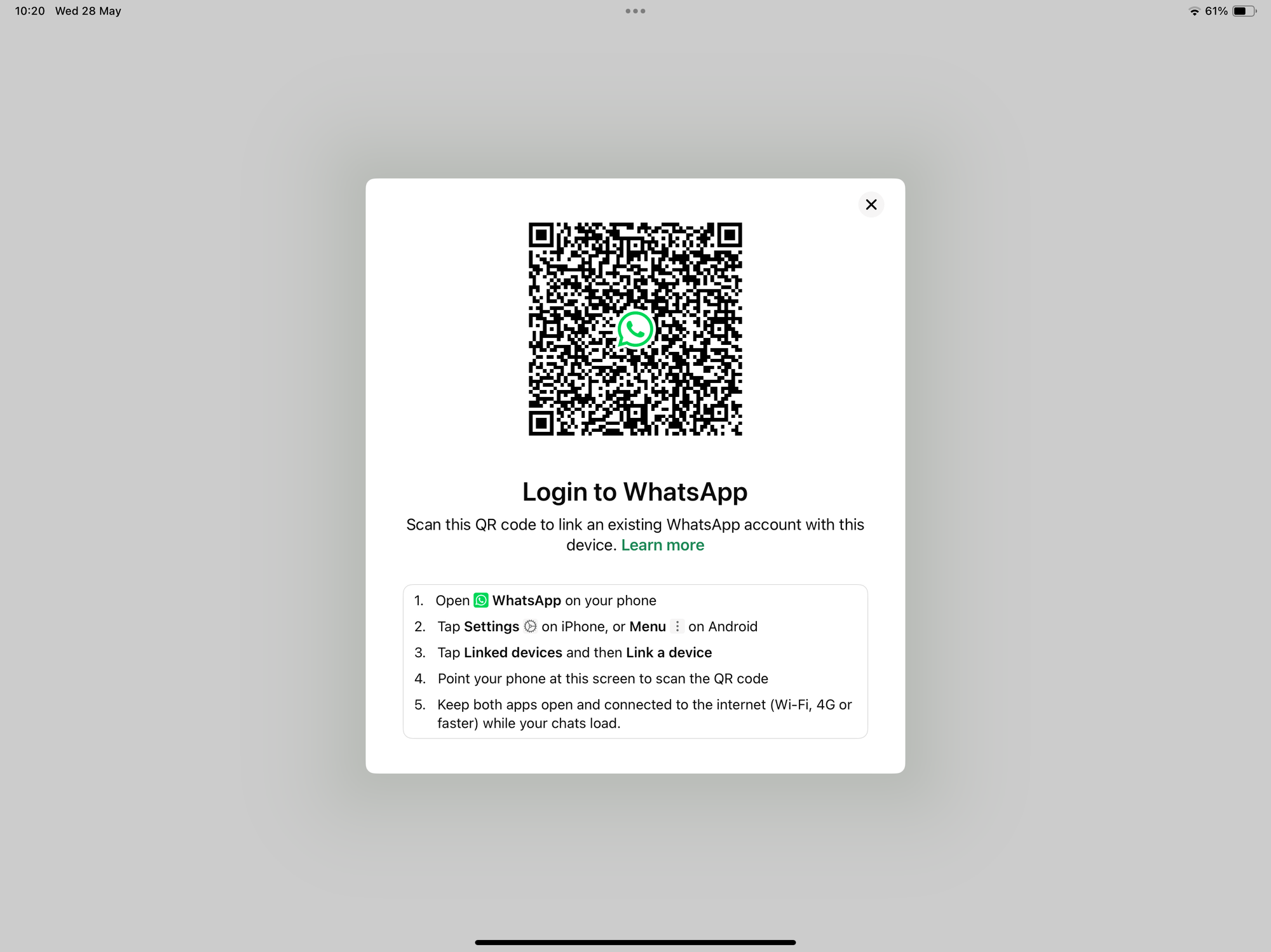 Step 4: Follow the on-screen instructions to link your iPad with an already existing WhatsApp account