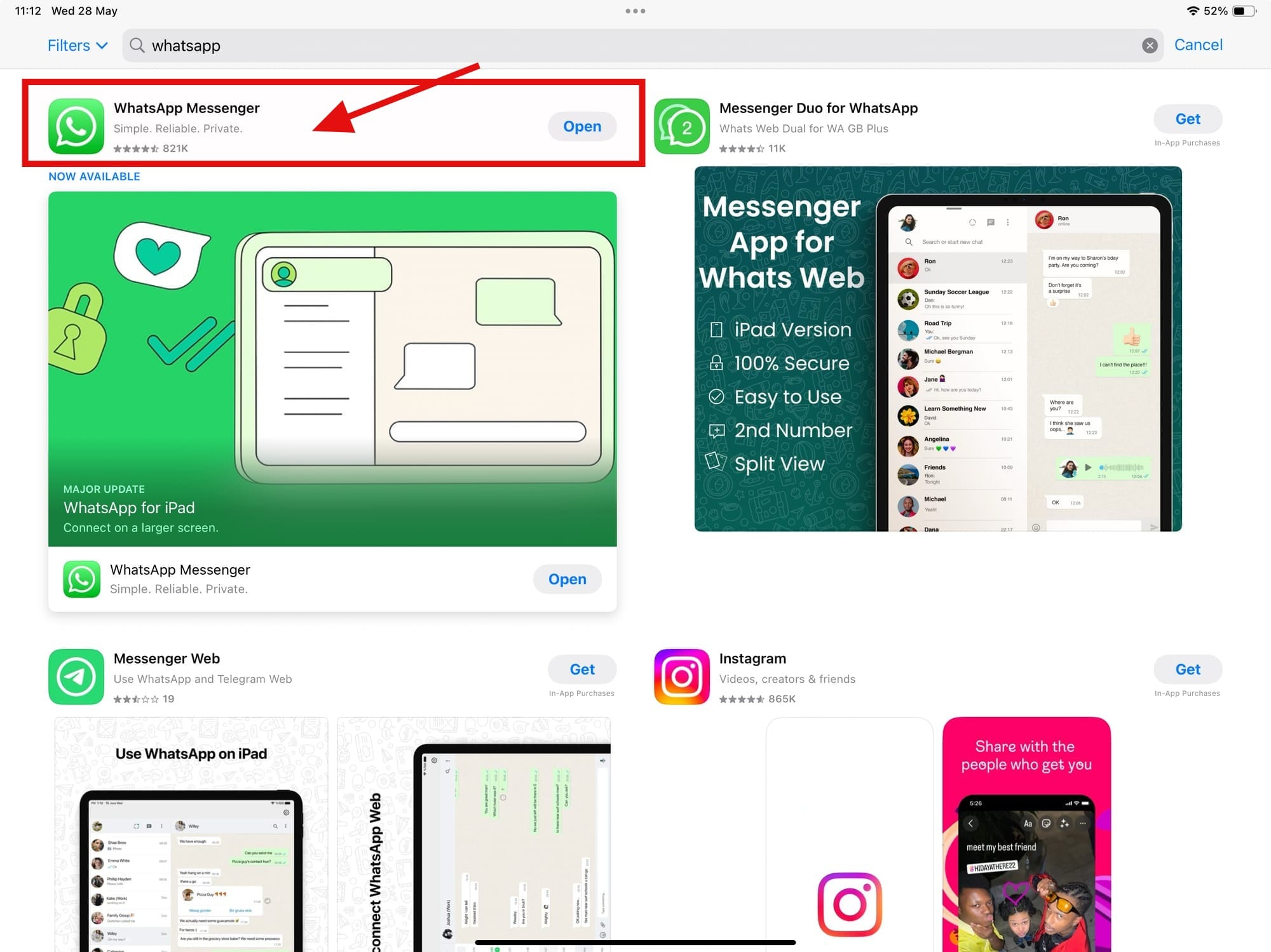 Step 2: Search for WhatsApp in the App store, then select WhatsApp Messenger