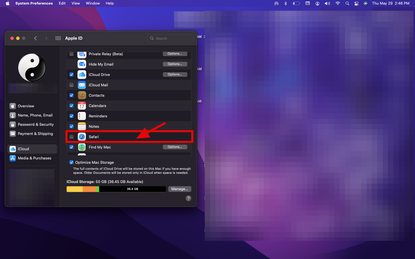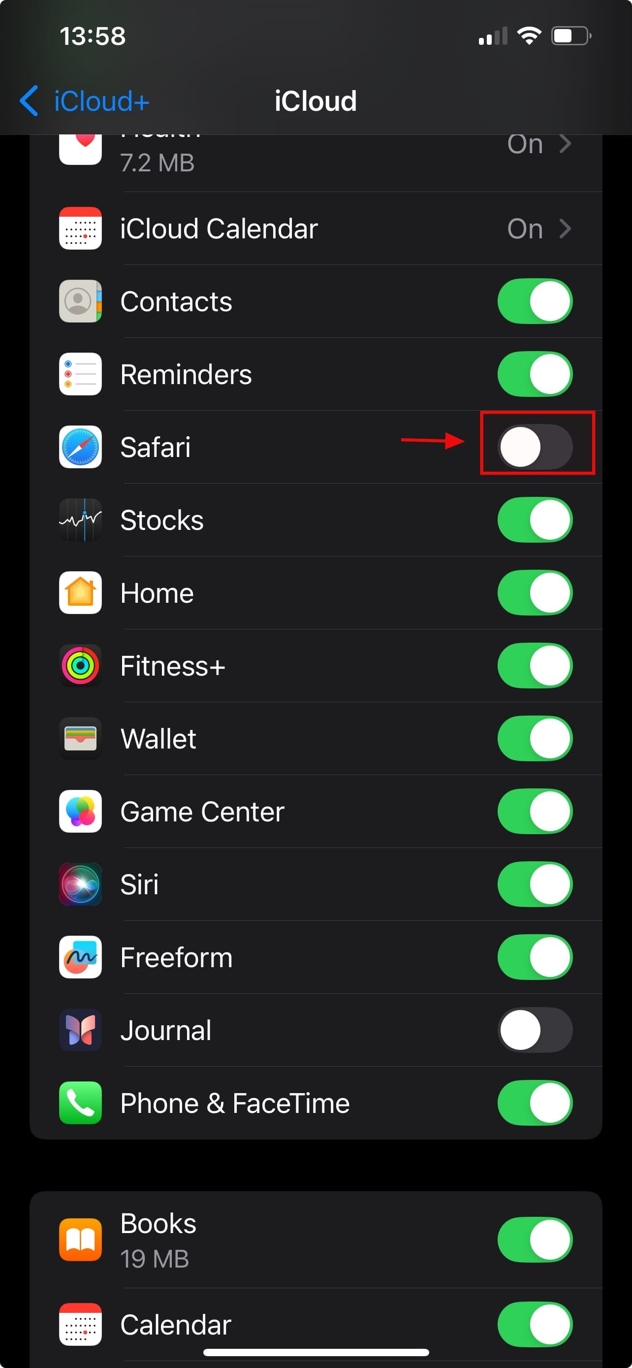 Step 5: Toggle on Safari to ensure iCloud Tabs are on