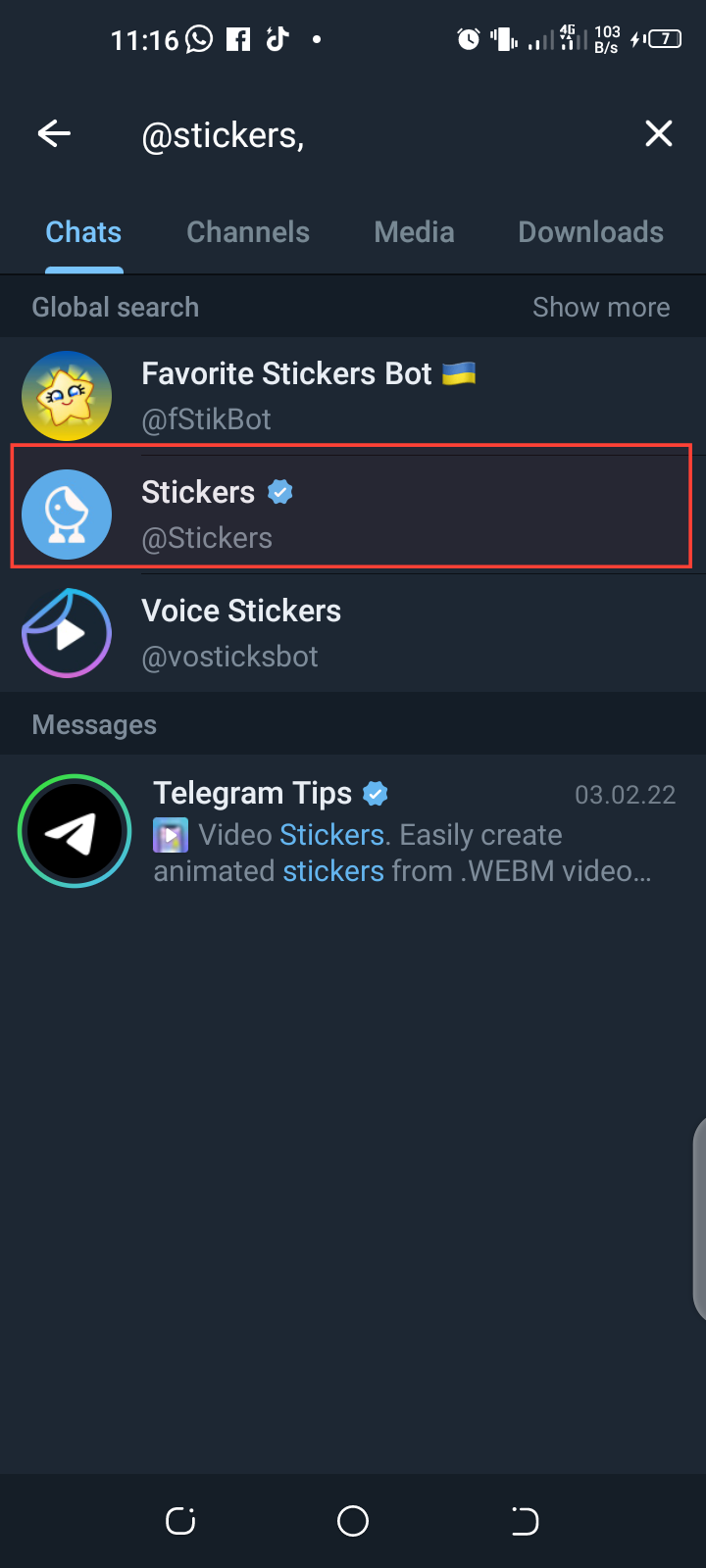 - Once you find the bot, tap on its name.