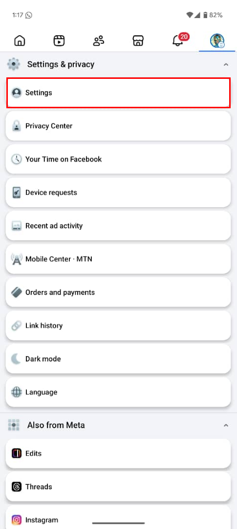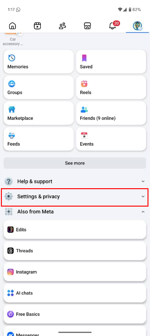 Step 2: Select the Settings & privacy drop-down