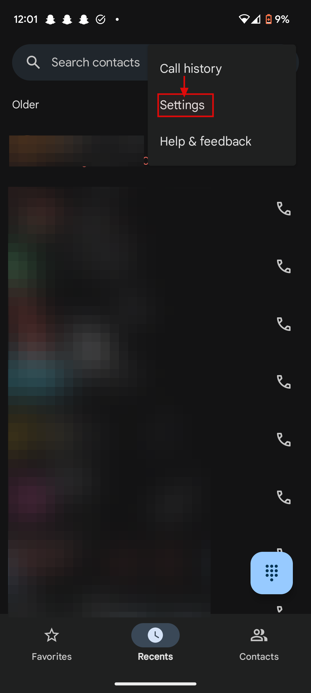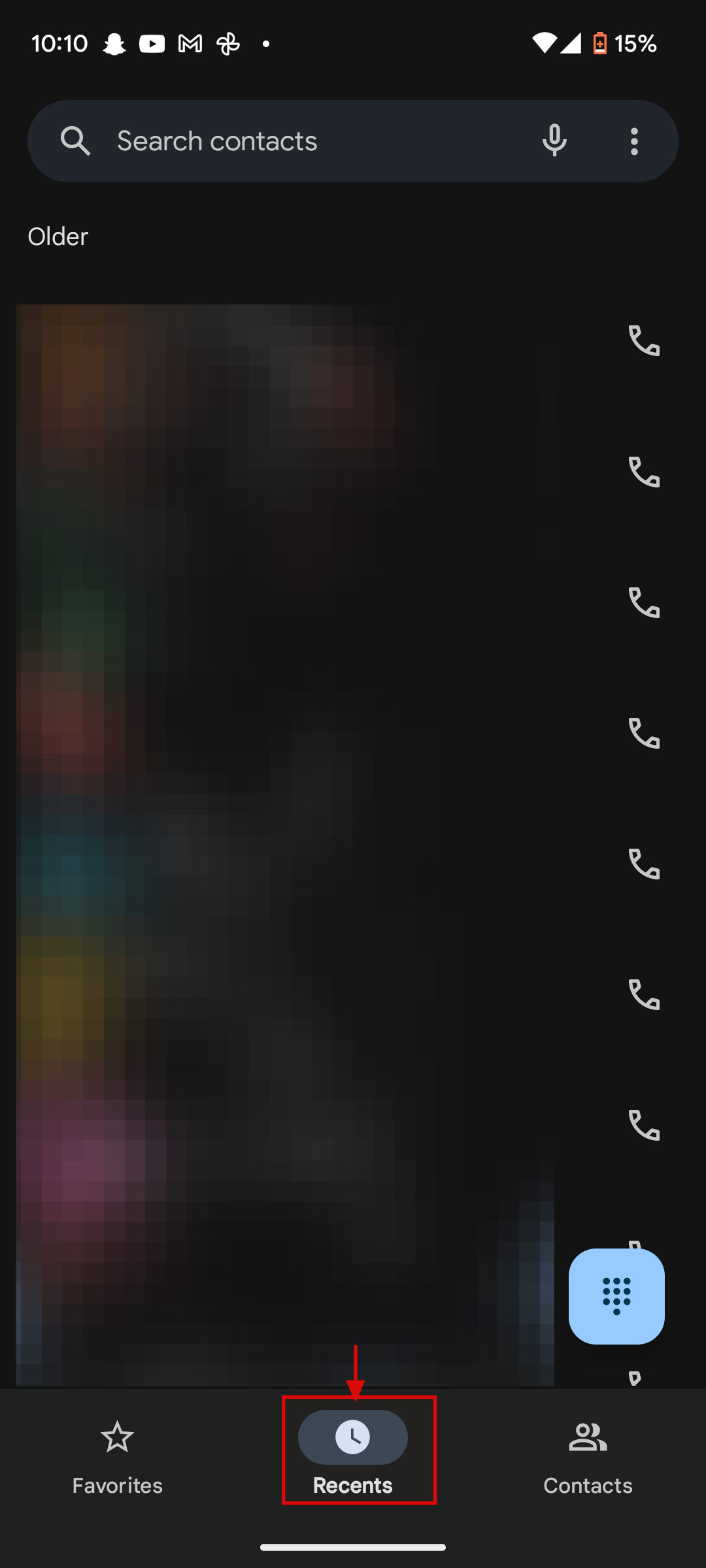 Step 1: Open the phone app on your mobile device and click on Recents