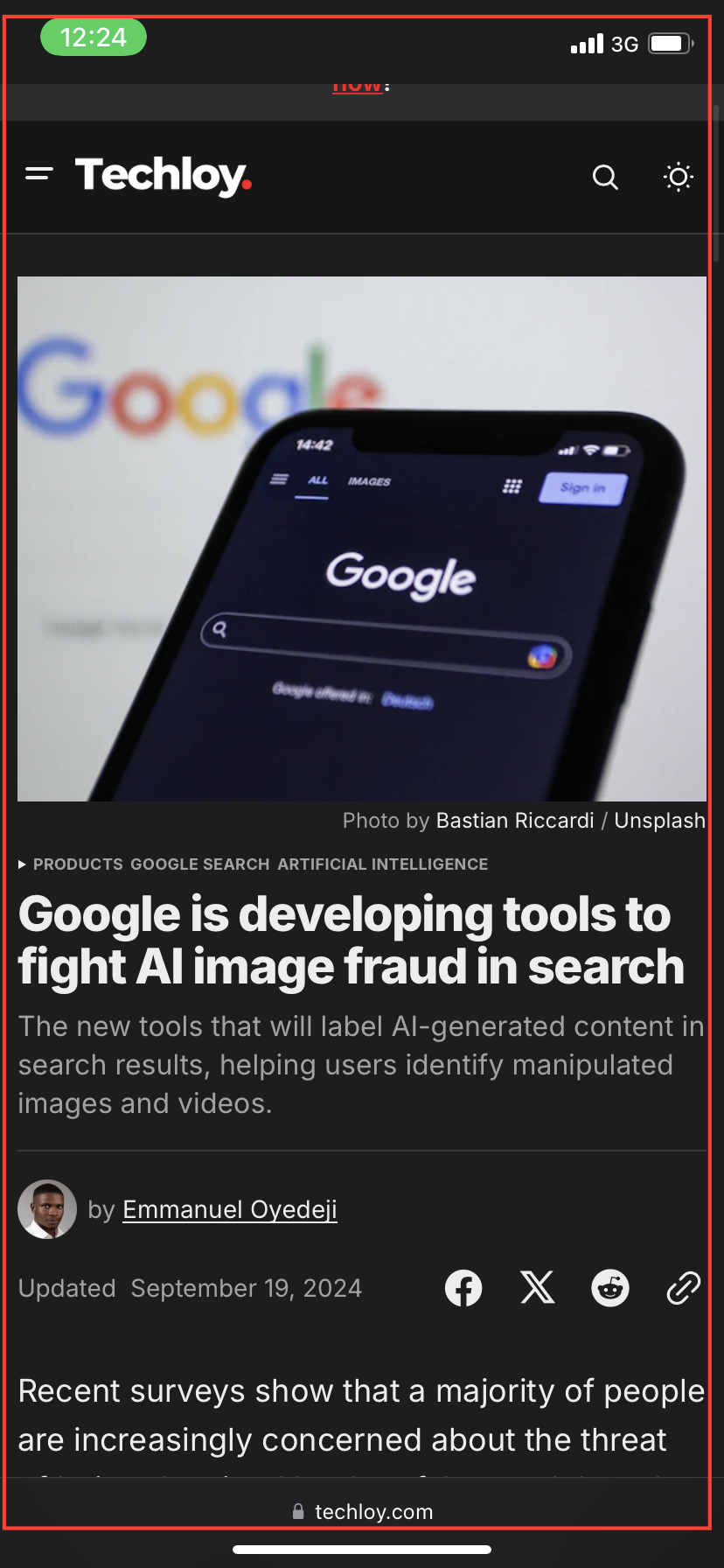 Step 1: Open the app containing the content you want to capture and scroll to the top of the page.