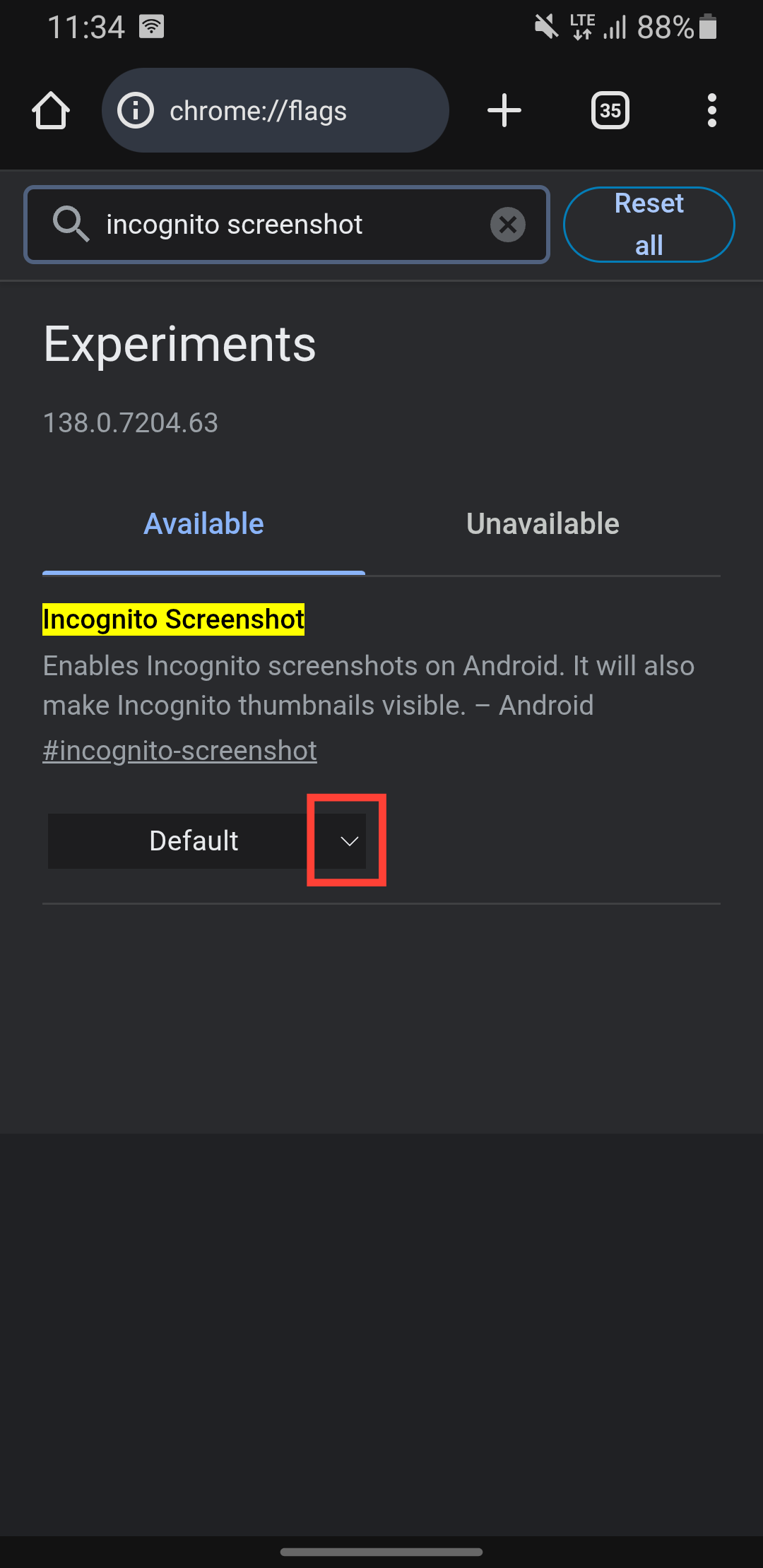 Step 3: Tap the dropdown menu under "Incognito Screenshot".