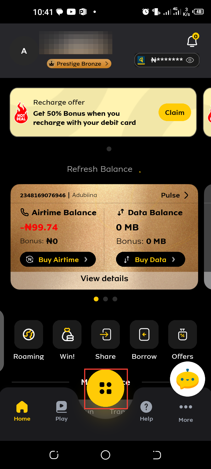 Step 2: Once logged in, tap the grid icon to navigate the options available.