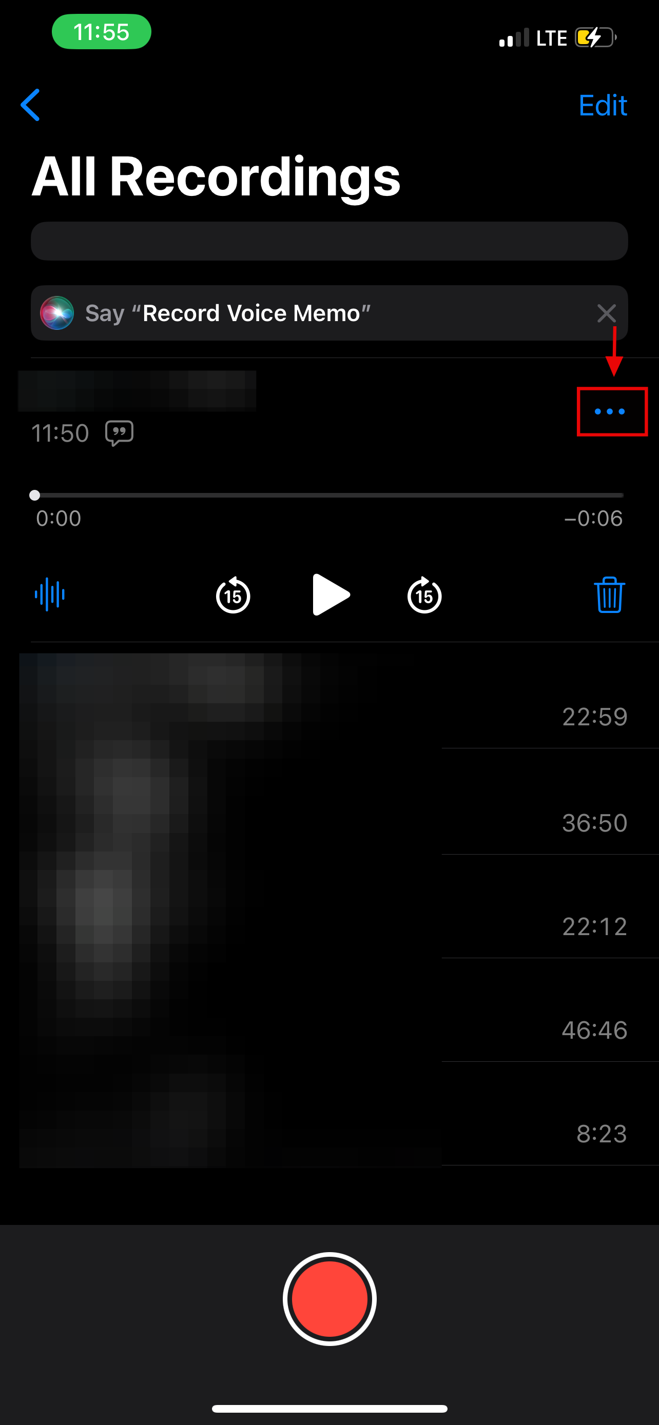 Step 4: Select the recently recorded audio, then click on the three horizontal dots on the right-hand side