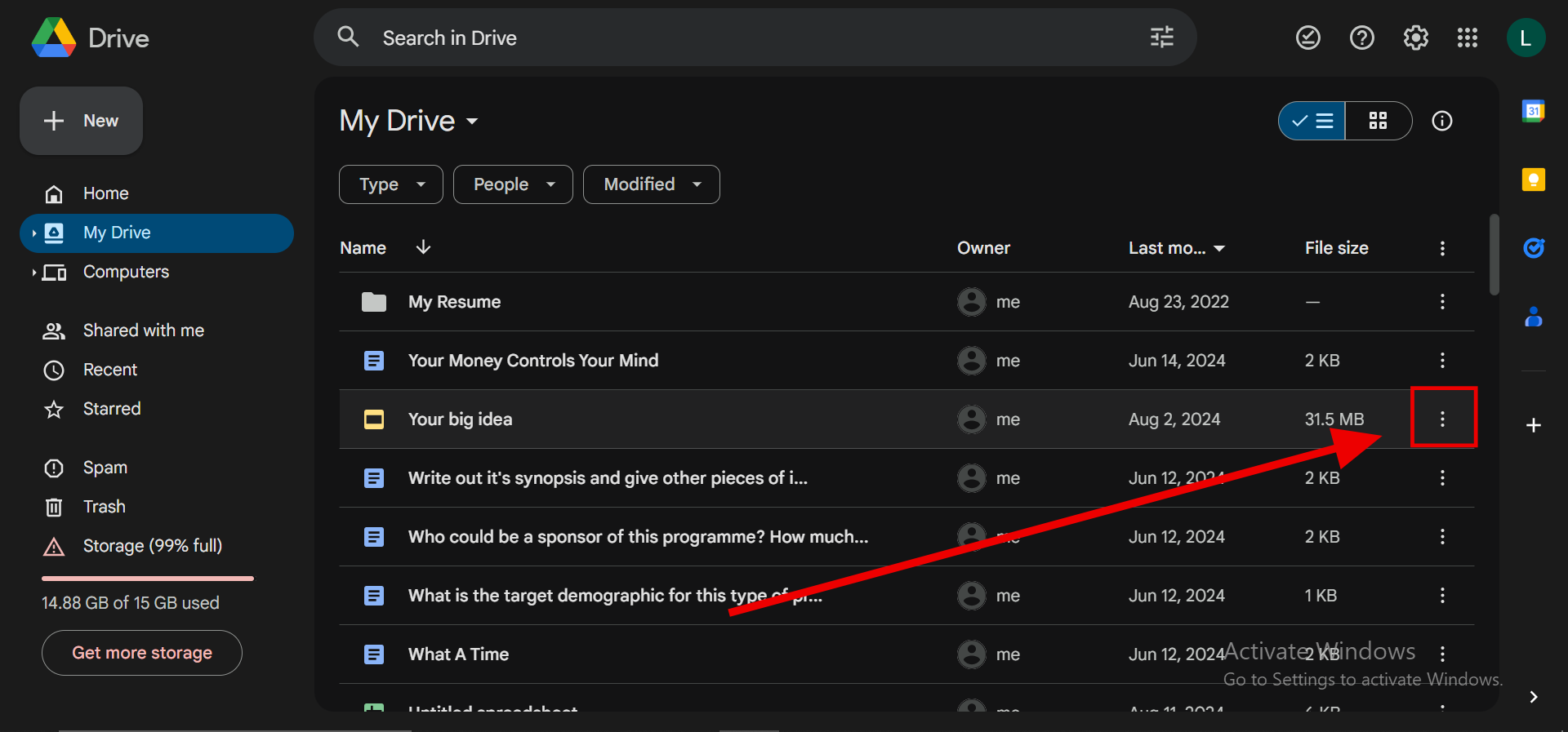 Step 1: Select the three dots on the right of the document you would like to transfer