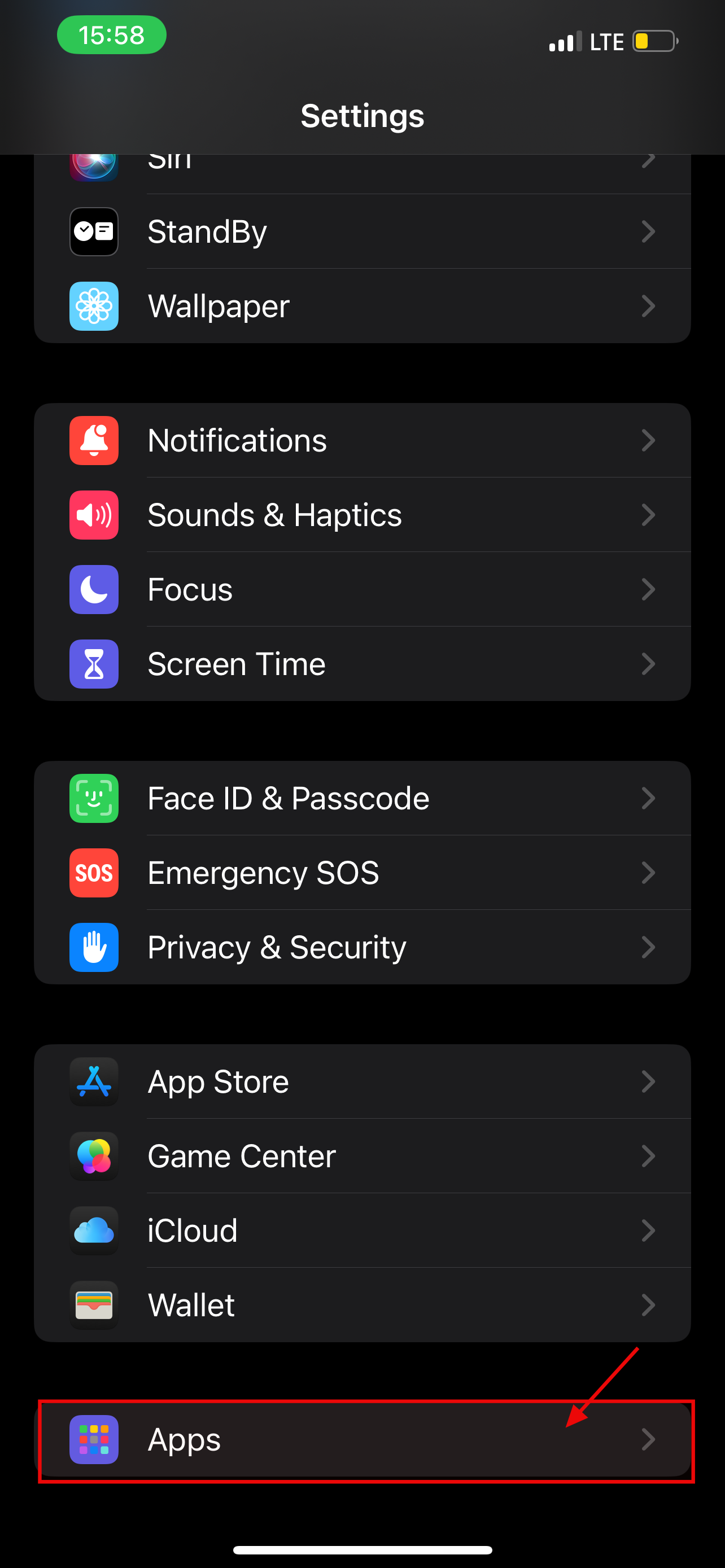 Step 2: Once you open the Settings App on your iPhone, scroll down to Apps and click on it