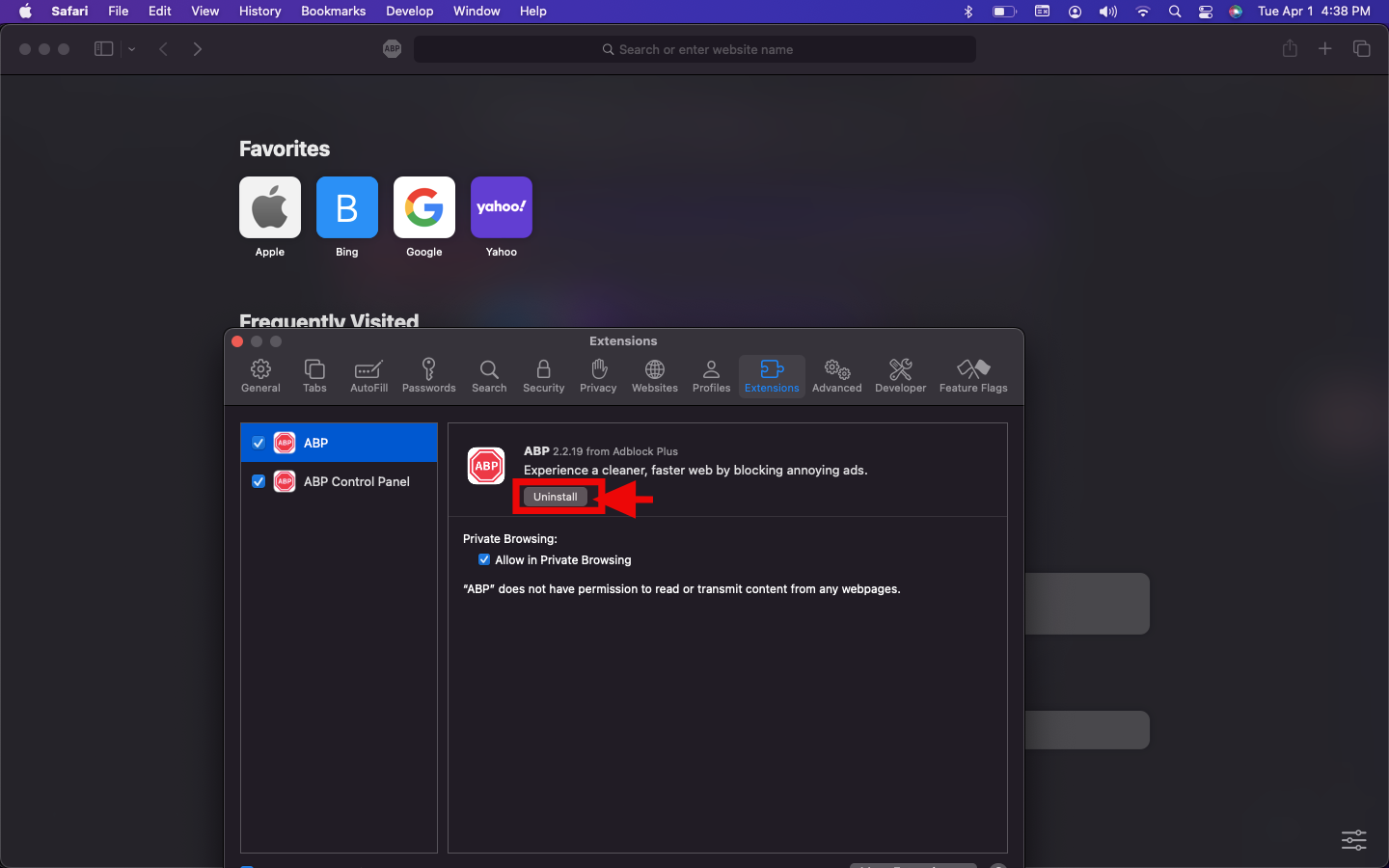 Step 4: Click Uninstall to remove AdBlock