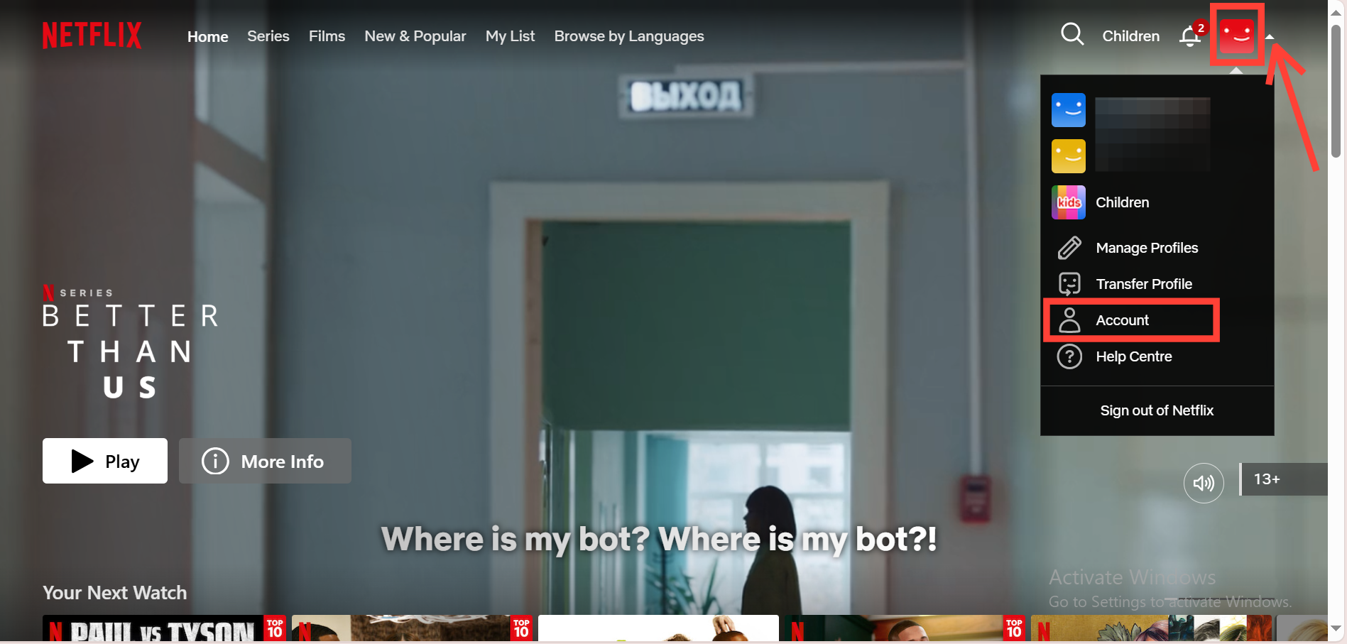 Step 1: Log in to your Netflix account using a web browser. Once logged in, click on the profile icon in the top-right corner and select Account from the drop-down menu.